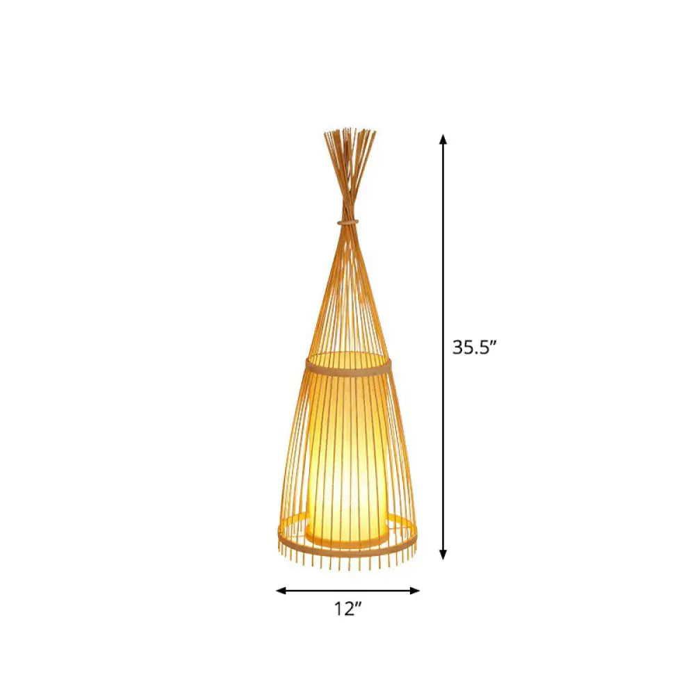Lámpara de pie de bambú del sudeste asiático con diseño cónico y pantalla cilíndrica