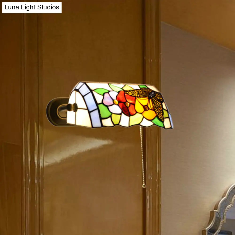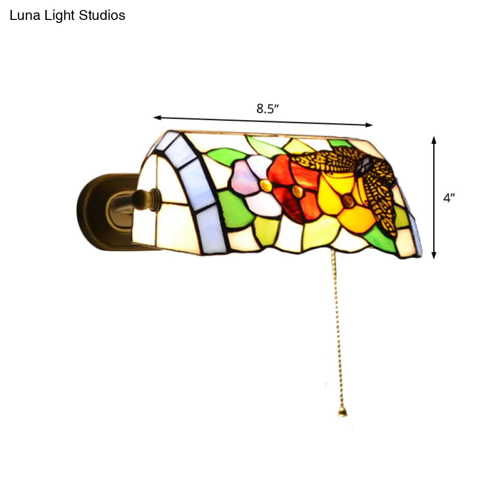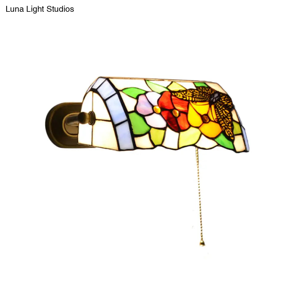 Aplique de pared Banker - Aplique floral de vitral de estilo tradicional en latón