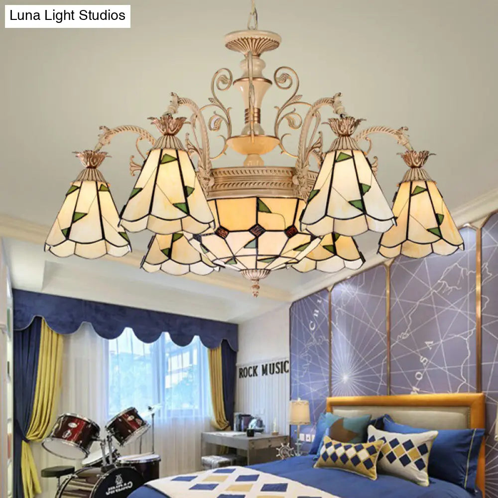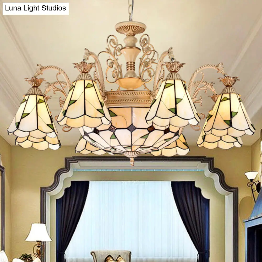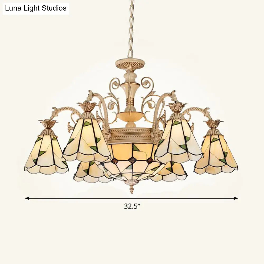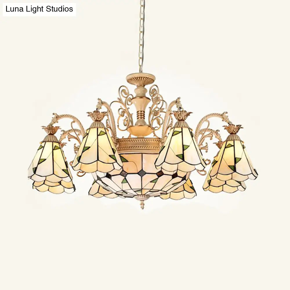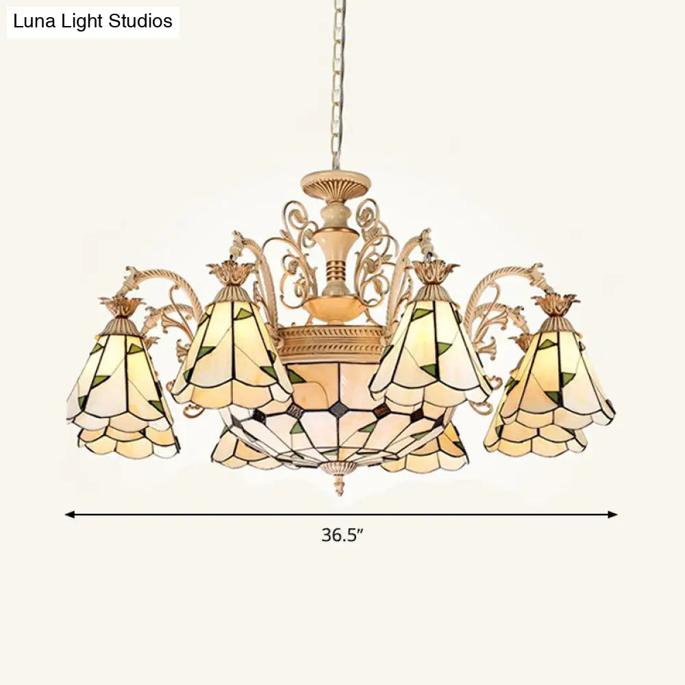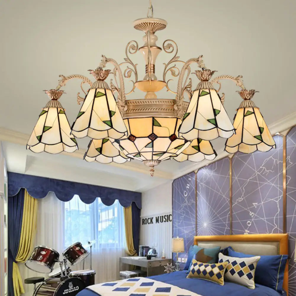 Esta lámpara de araña cónica barroca está fabricada con materiales de la más alta calidad. Construida para perdurar por muchos años, cuenta con una impresionante pantalla de vitral color beige. Esta hermosa lámpara no necesita bombillas, ya que emite su propia luz. Si necesita iluminación adicional, funciona con un voltaje de 220V-240V o 110V-120V y su casquillo es E26/E27, lo que le permite elegir el tipo de luz que prefiera: LED, incandescente o fluorescente. Con su estilo clásico, materiales lujosos y diseño majestuoso, esta lámpara de araña es perfecta para decorar cualquier espacio y añadir un toque único de sofisticación.