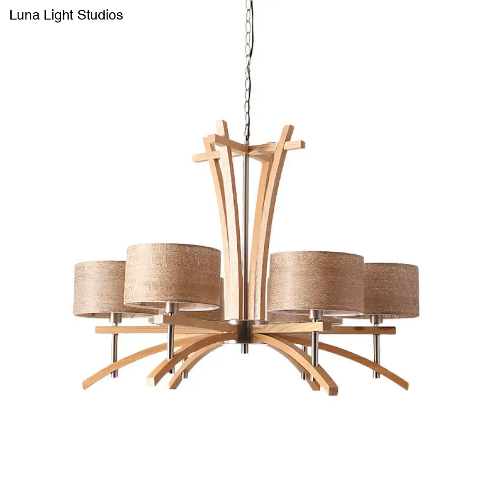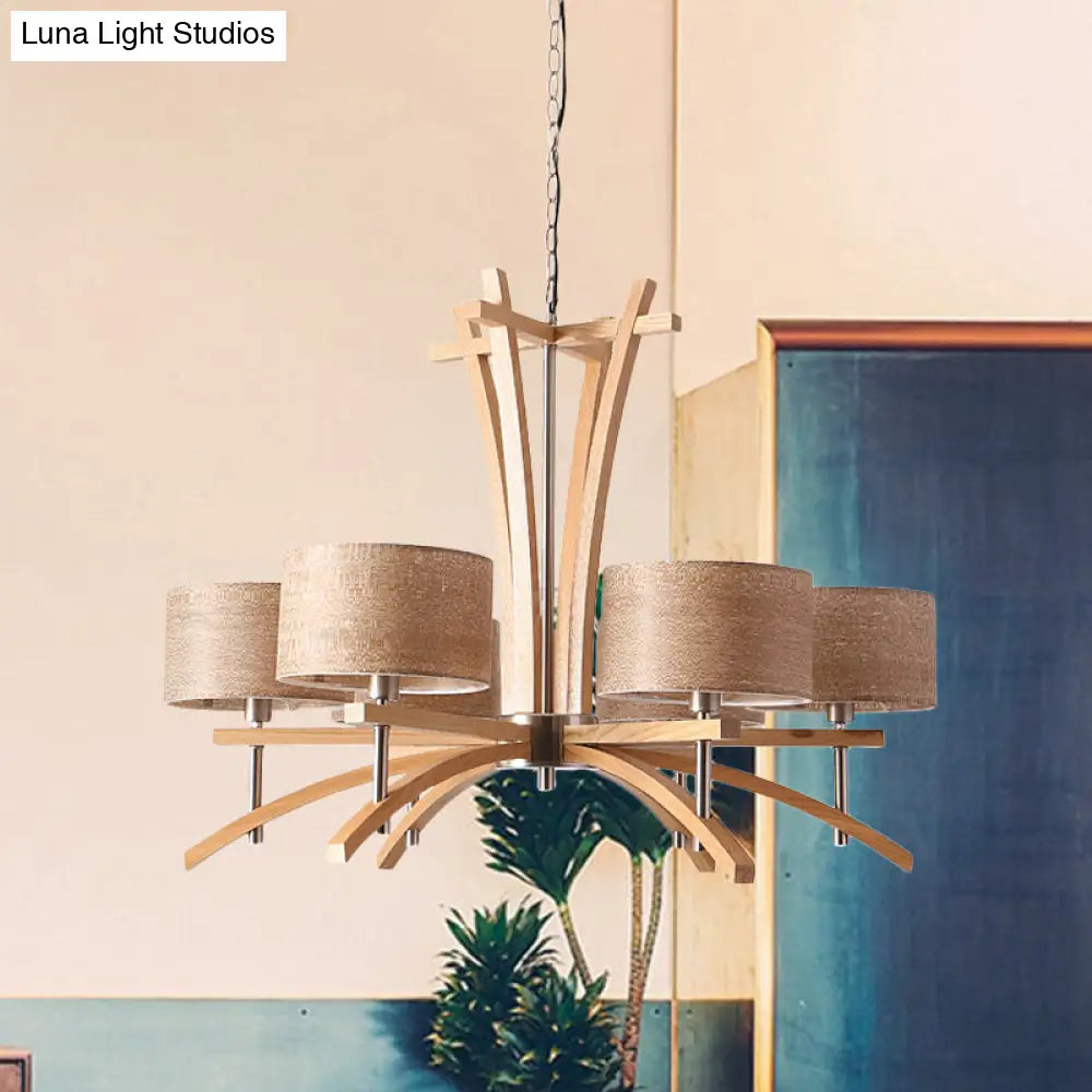 Lámpara de araña radial moderna color beige con pantallas suspendidas de madera - Lámpara colgante de 3/6 luces