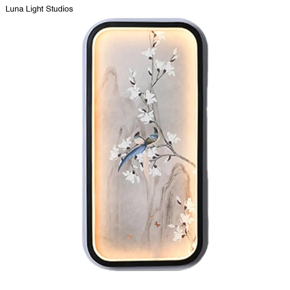 Lámpara mural de tela con diseño de pájaro y flor china: Iluminación LED de pared, blanco y negro