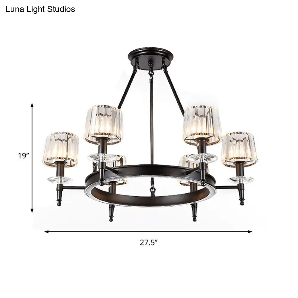 Lámpara colgante vintage negra en forma de barril: Araña metálica con pantallas de cristal prismático - 3/6/8 luces