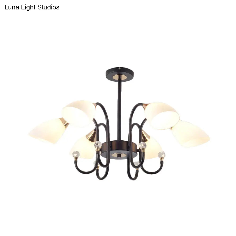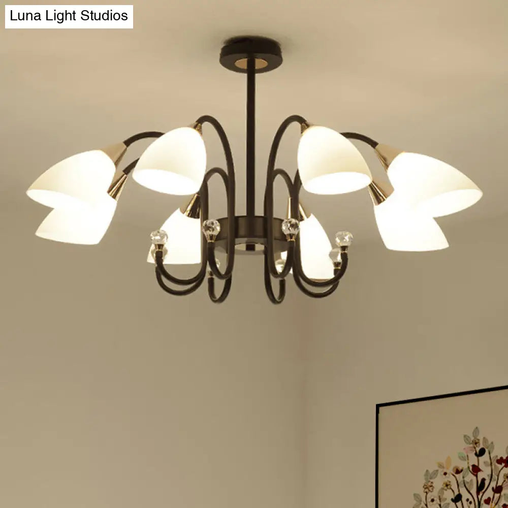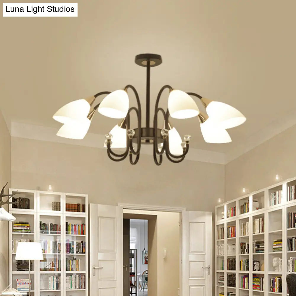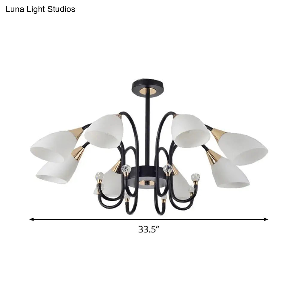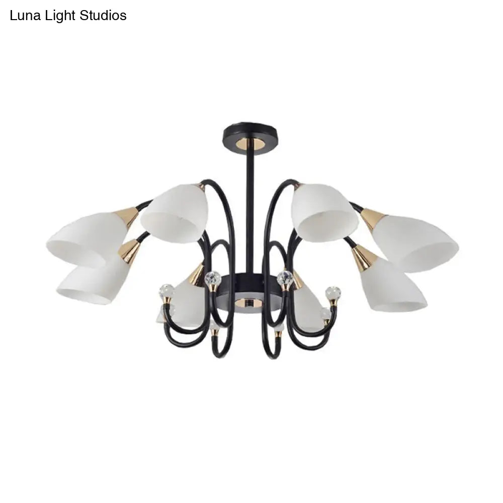 Lámpara de araña rústica de hierro negro con pantallas de cristal esmerilado - Lámpara de techo colgante con brazo curvo - 6/8/10 cabezales