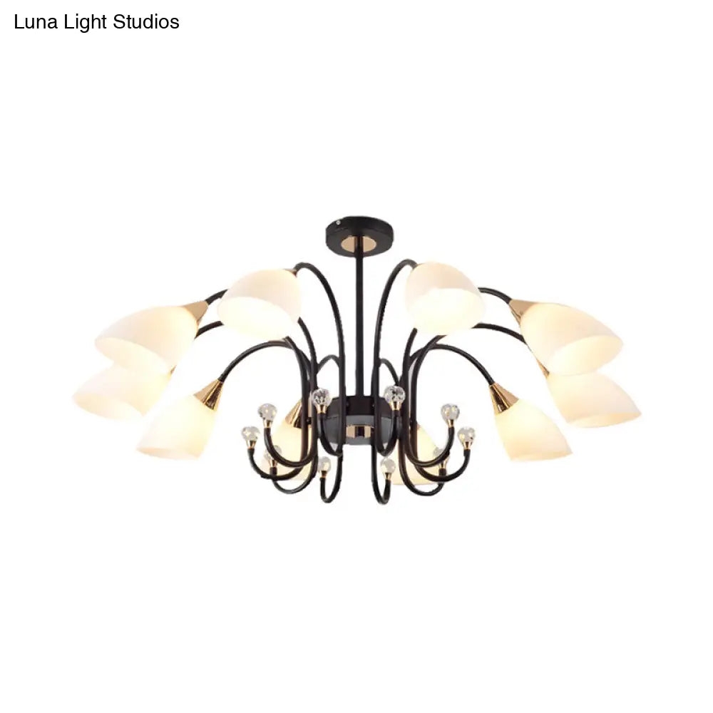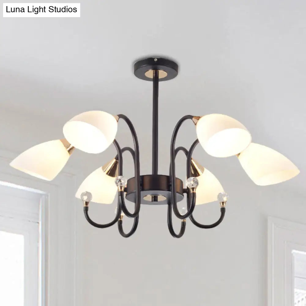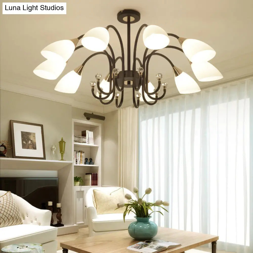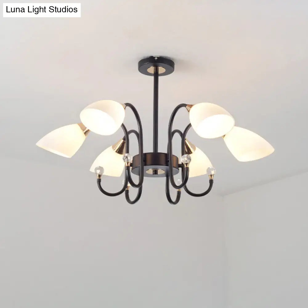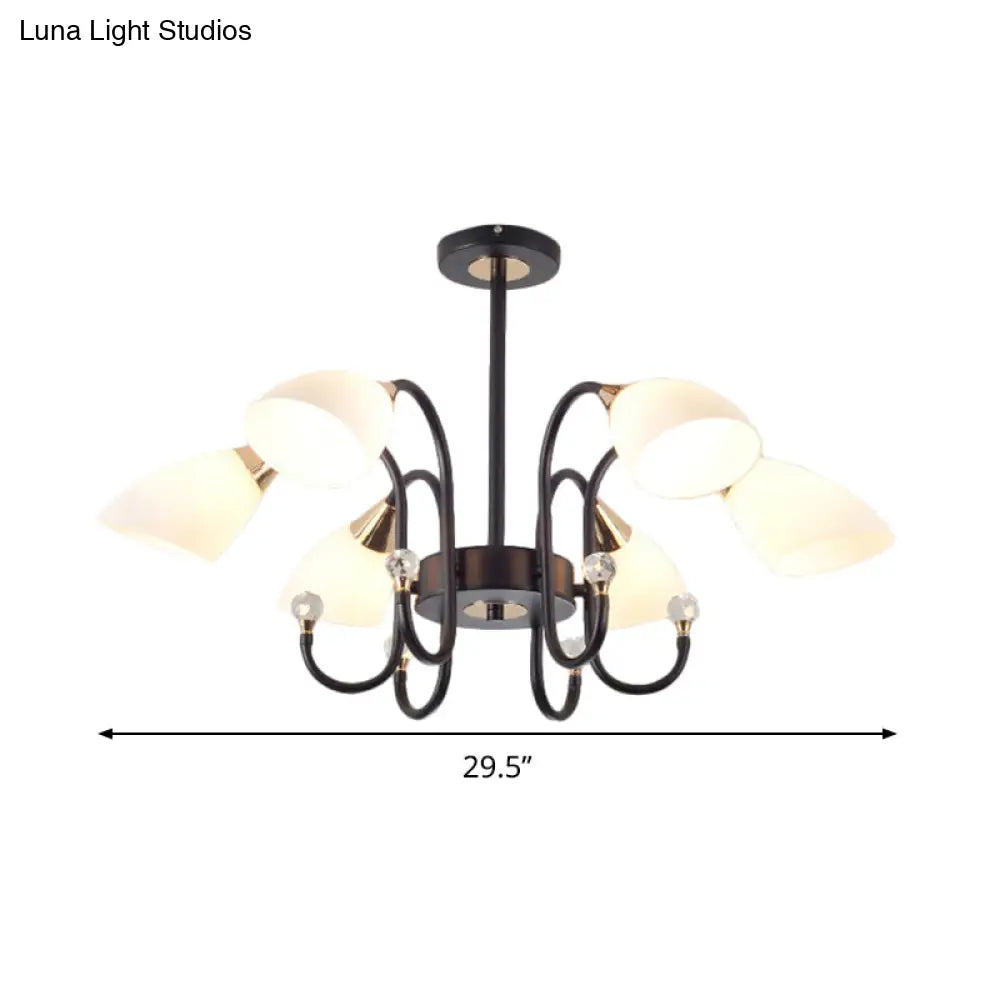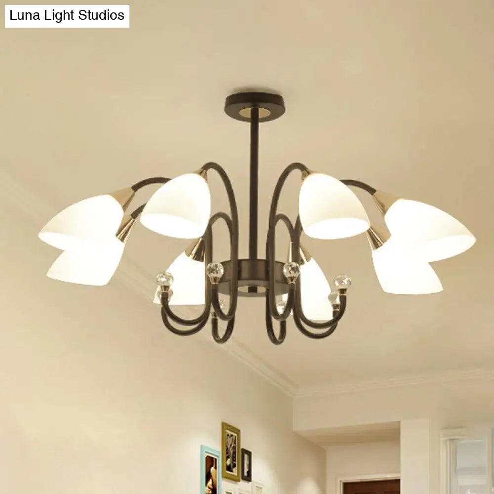 Lámpara de araña rústica de hierro negro con pantallas de cristal esmerilado - Lámpara de techo colgante con brazo curvo - 6/8/10 cabezales