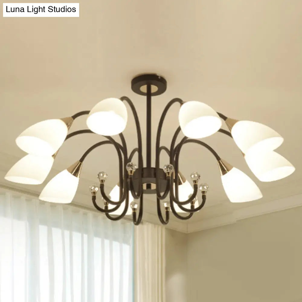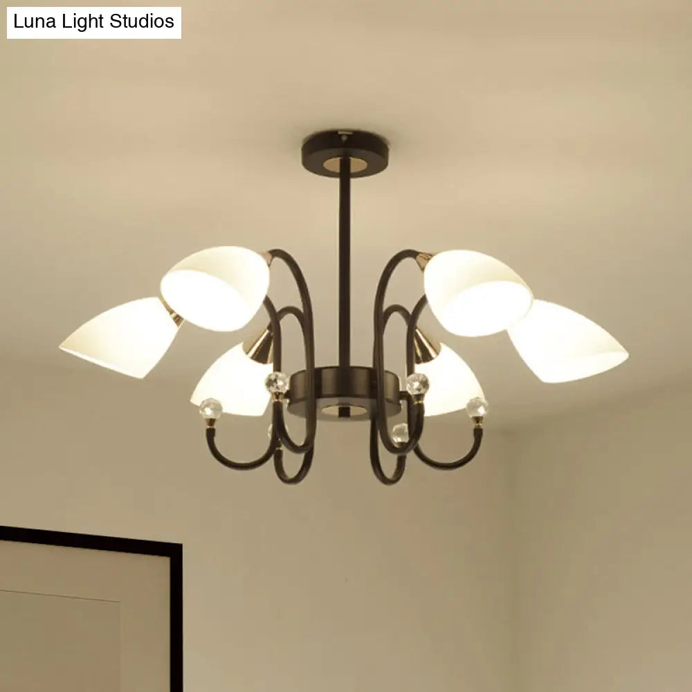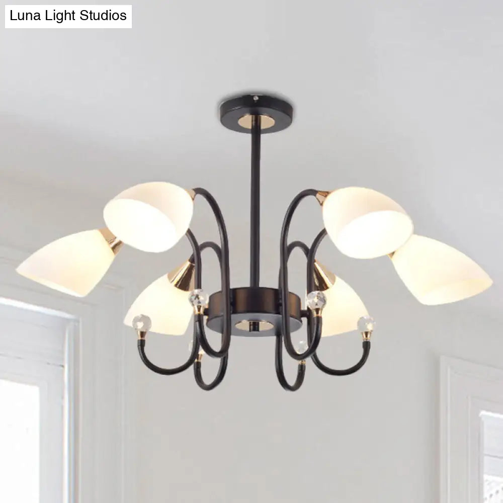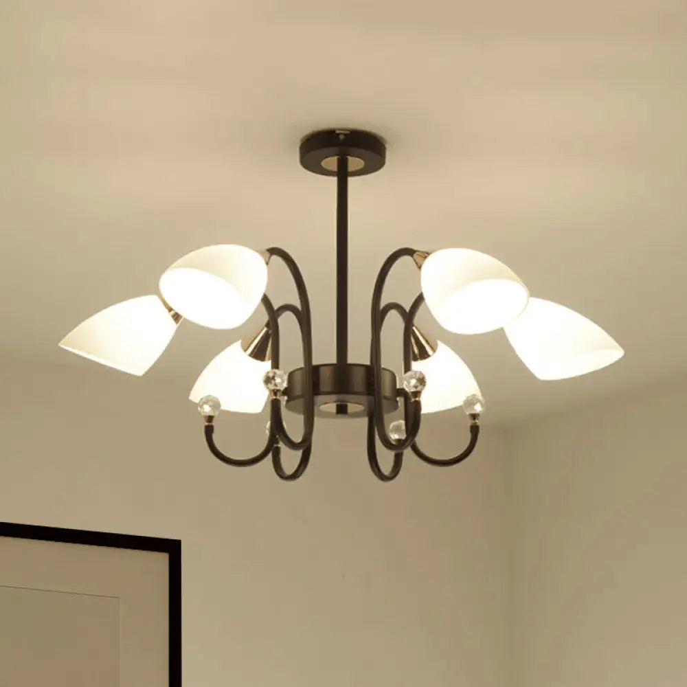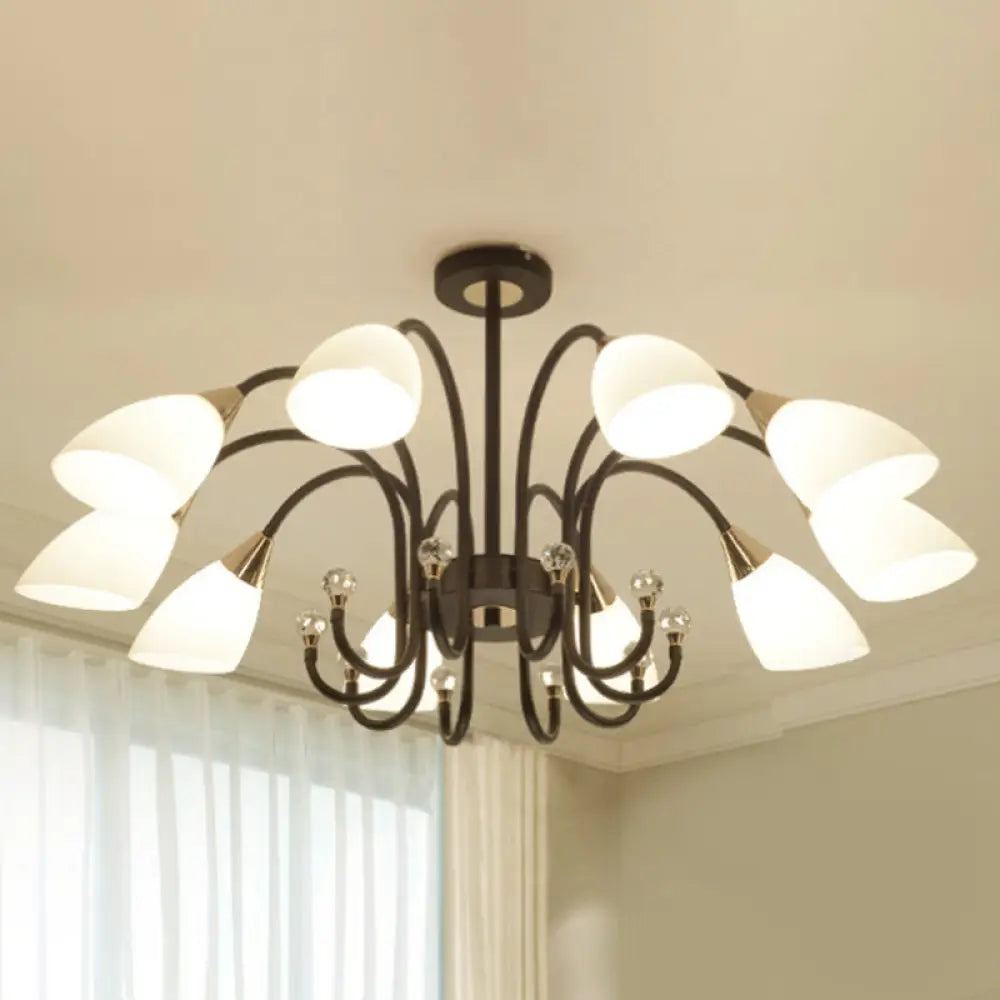 Lámpara de araña rústica de hierro negro con pantallas de cristal esmerilado - Lámpara de techo colgante con brazo curvo - 6/8/10 cabezales