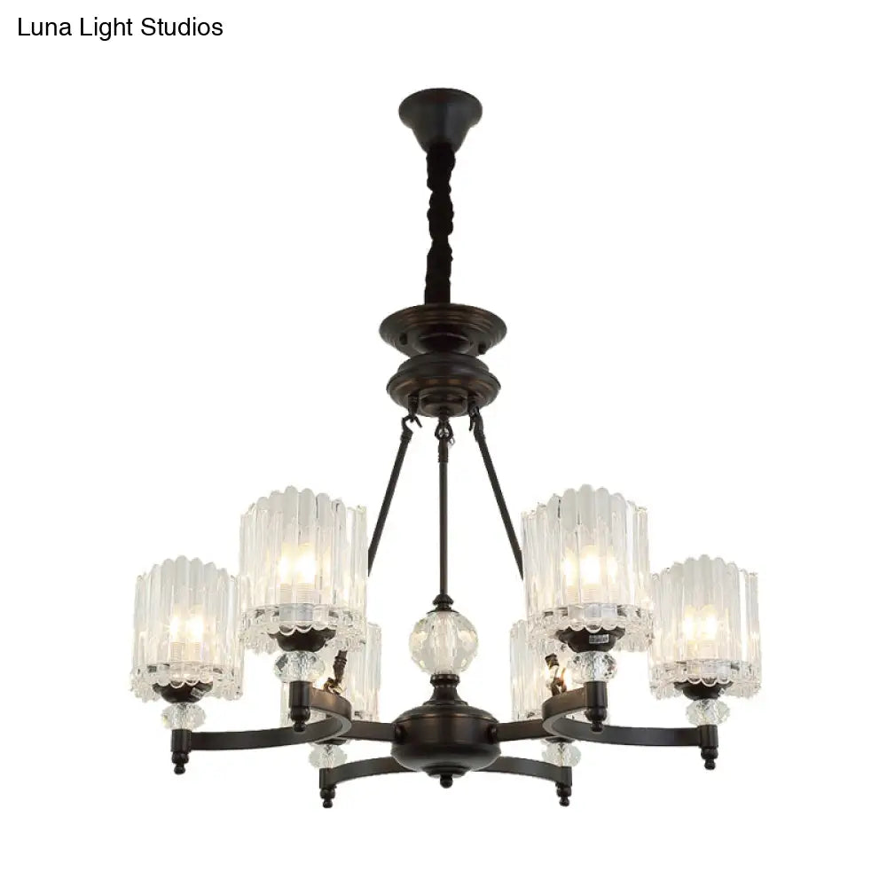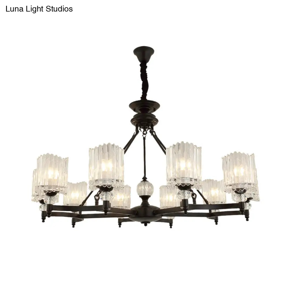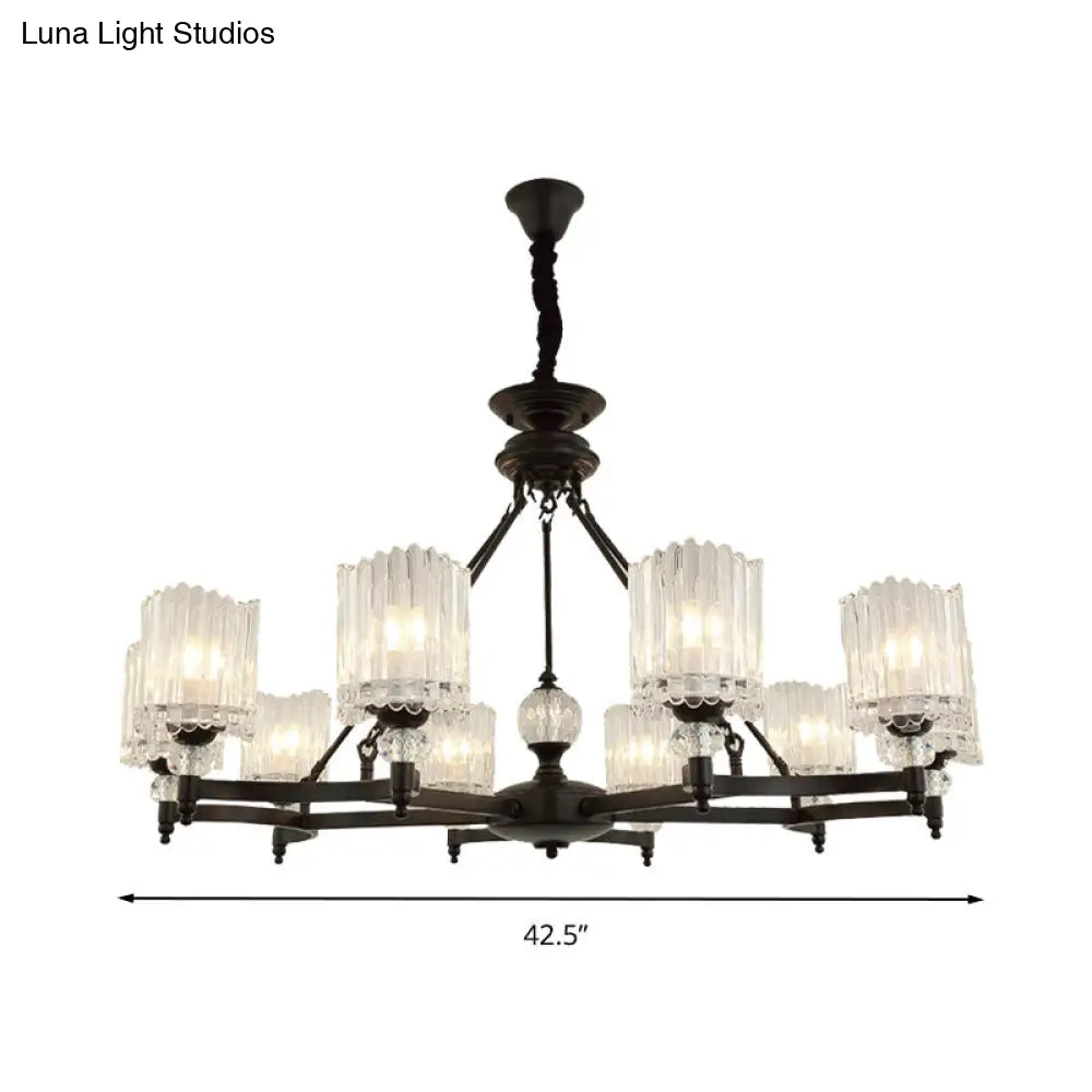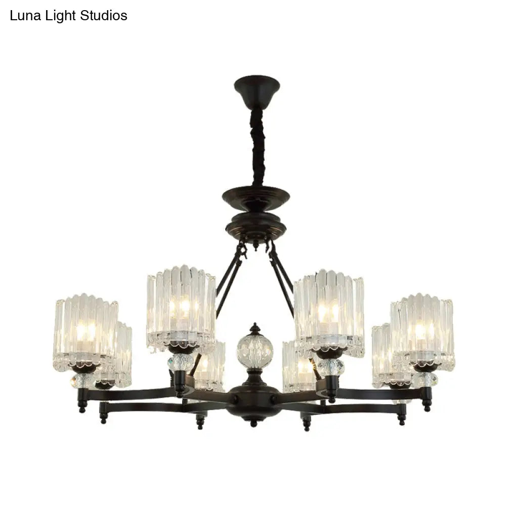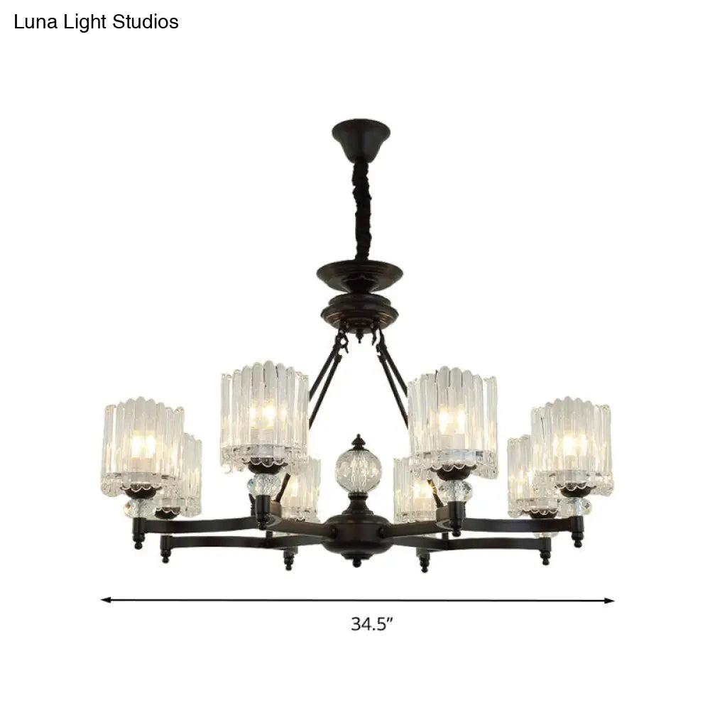 Lámpara colgante cilíndrica negra contemporánea con varillas de cristal - Kit de lámpara colgante de 6/8/10 cabezales, 28"/34.5"/42.5" de ancho
