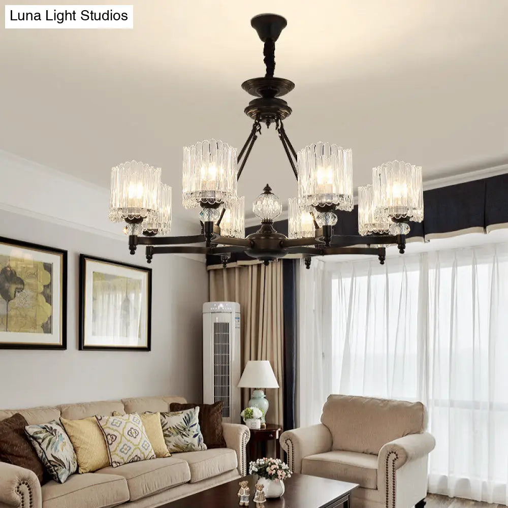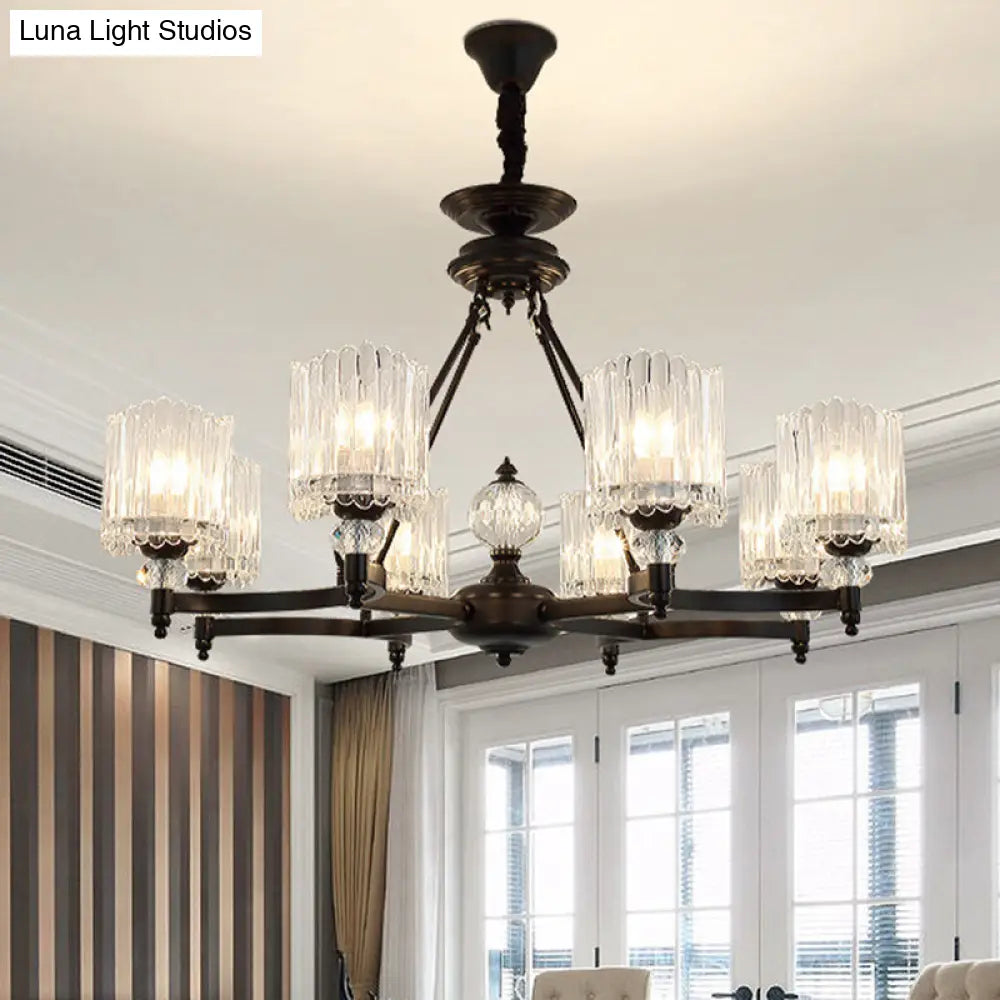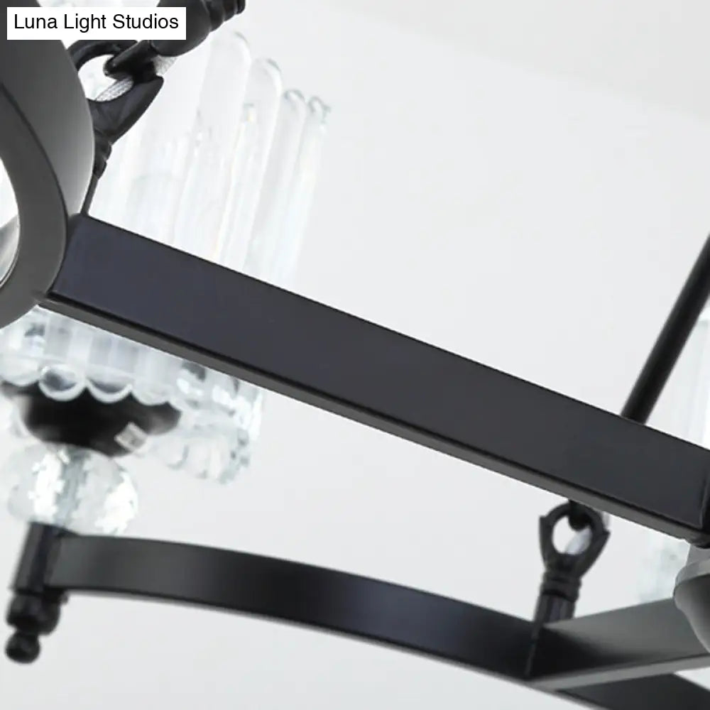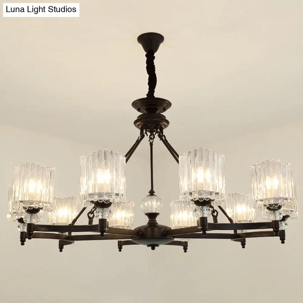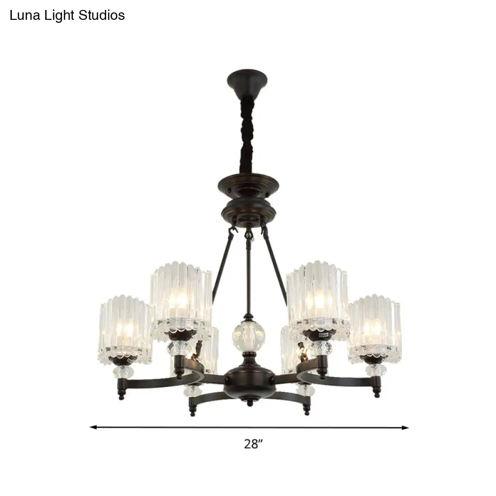 Lámpara colgante cilíndrica negra contemporánea con varillas de cristal - Kit de lámpara colgante de 6/8/10 cabezales, 28"/34.5"/42.5" de ancho