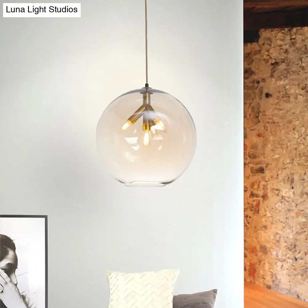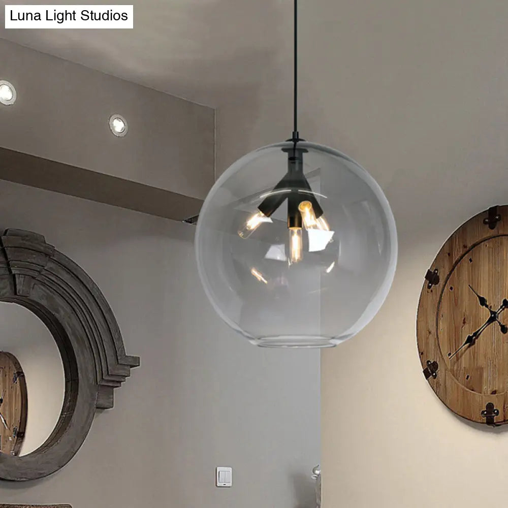 Lámpara de araña triple colgante de globo negro/dorado con cristal transparente - Moderna y mini