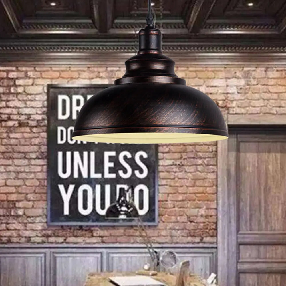Lámpara colgante ajustable con pantalla metálica en forma de cúpula, color negro/gris retro - 12"/14"/16" de ancho
