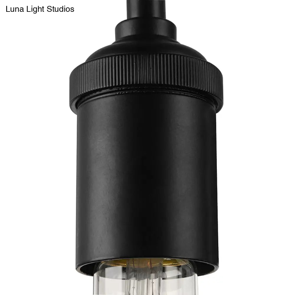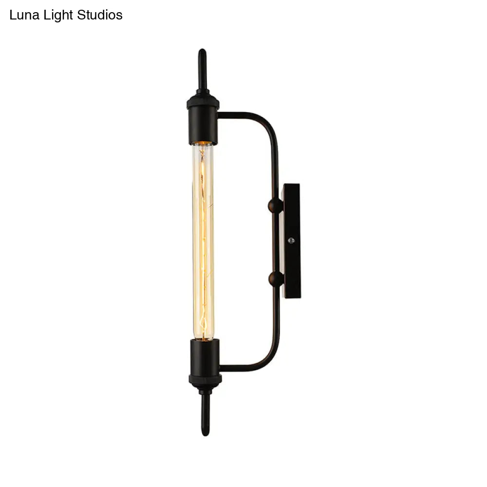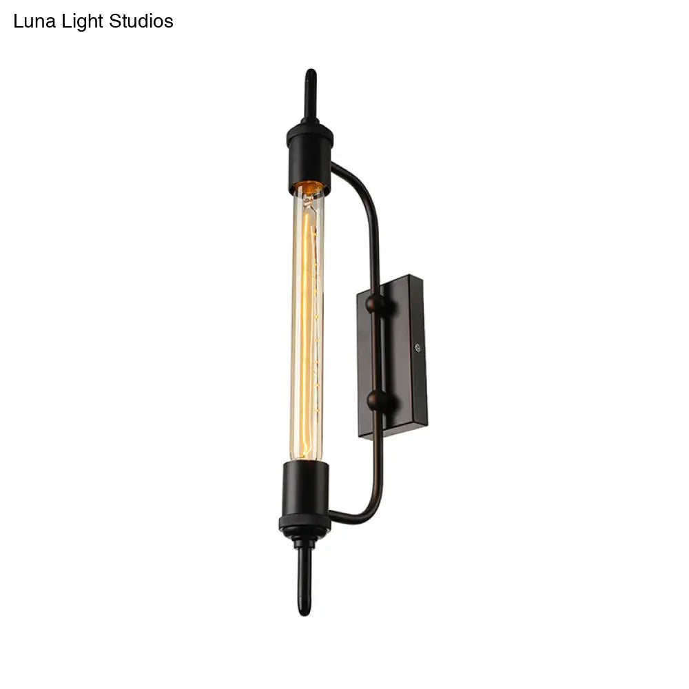 Aplique lineal de pared de metal negro con bombilla expuesta para altillo o balcón.