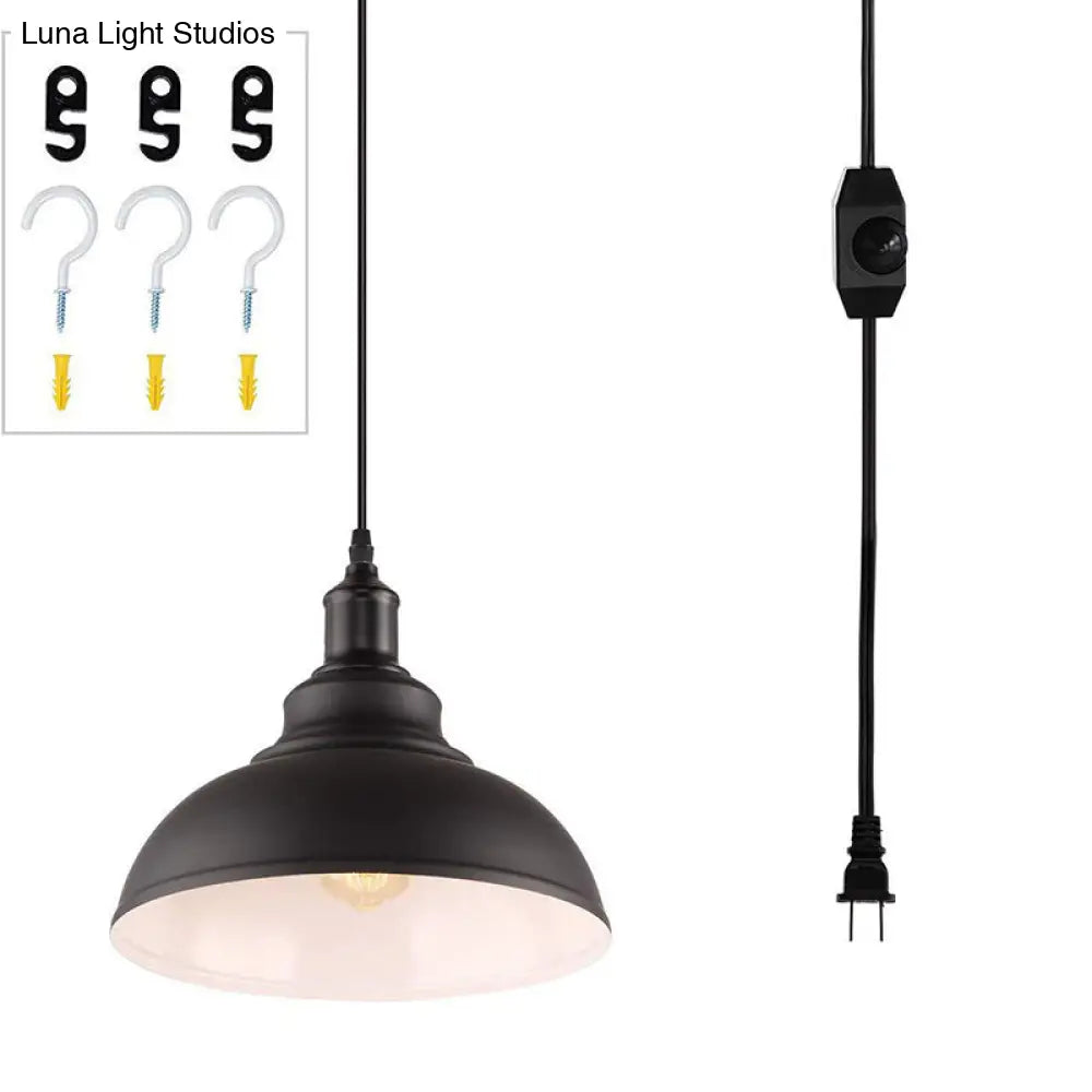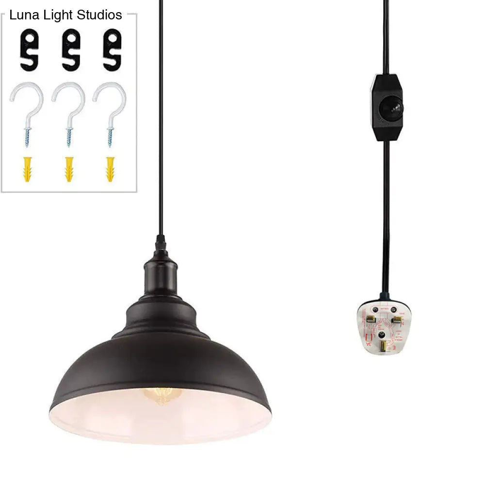 Lámpara de techo colgante industrial metálica con forma de tapa de olla en blanco y negro para restaurantes