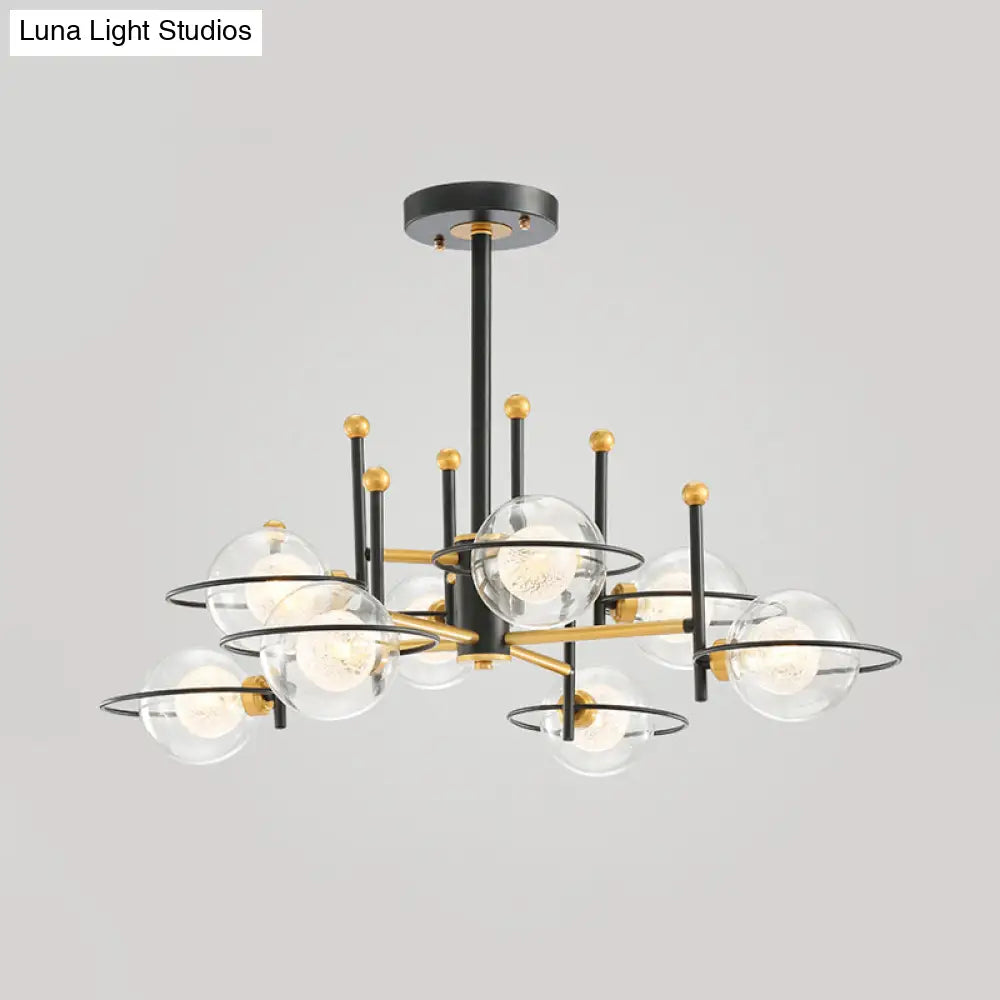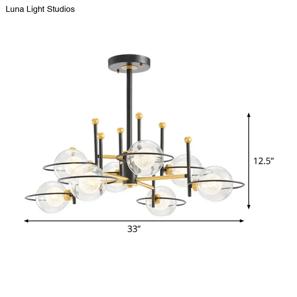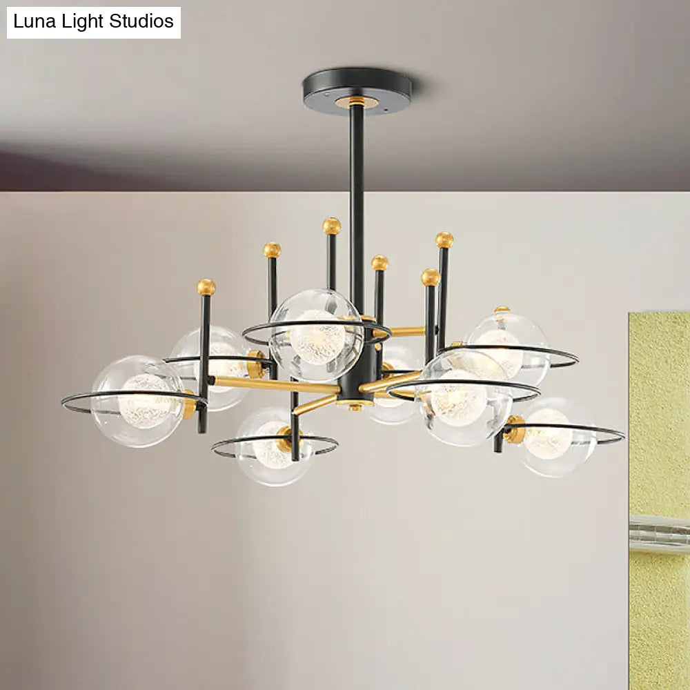 Lámpara de techo redonda moderna negra: Lámpara colgante tipo araña de cristal transparente de 8 luces