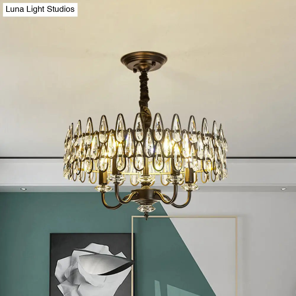 Lámpara de araña moderna negra en forma de lágrima con diseño de tambor y colgante de cristal facetado de 4 luces