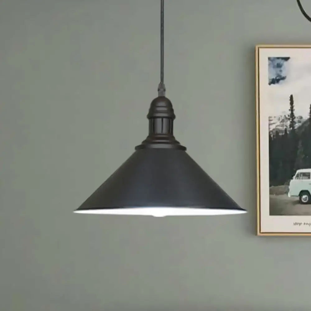 Lámpara colgante de techo cónica estilo casa de campo en blanco y negro