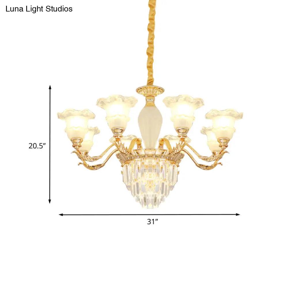 Lámpara de araña moderna de cristal dorado con cristal esmerilado - Lámpara colgante Blossom (8 bombillas)