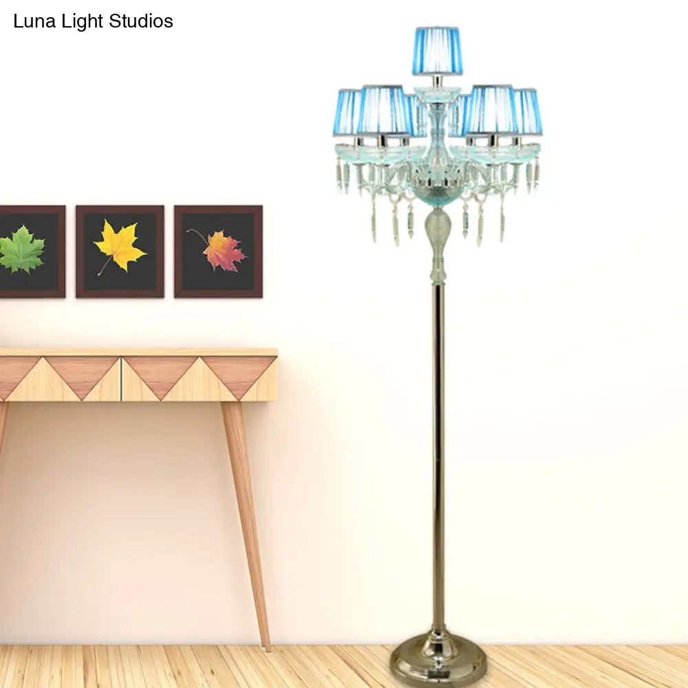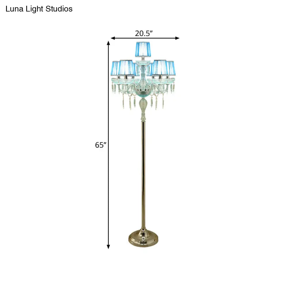 Lámpara de pie candelabro de cristal tradicional azul con pantalla plisada, de 5/6/7 bombillas.