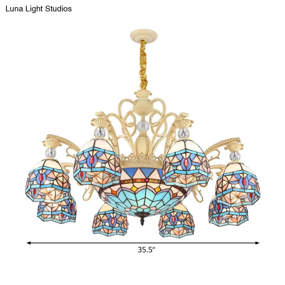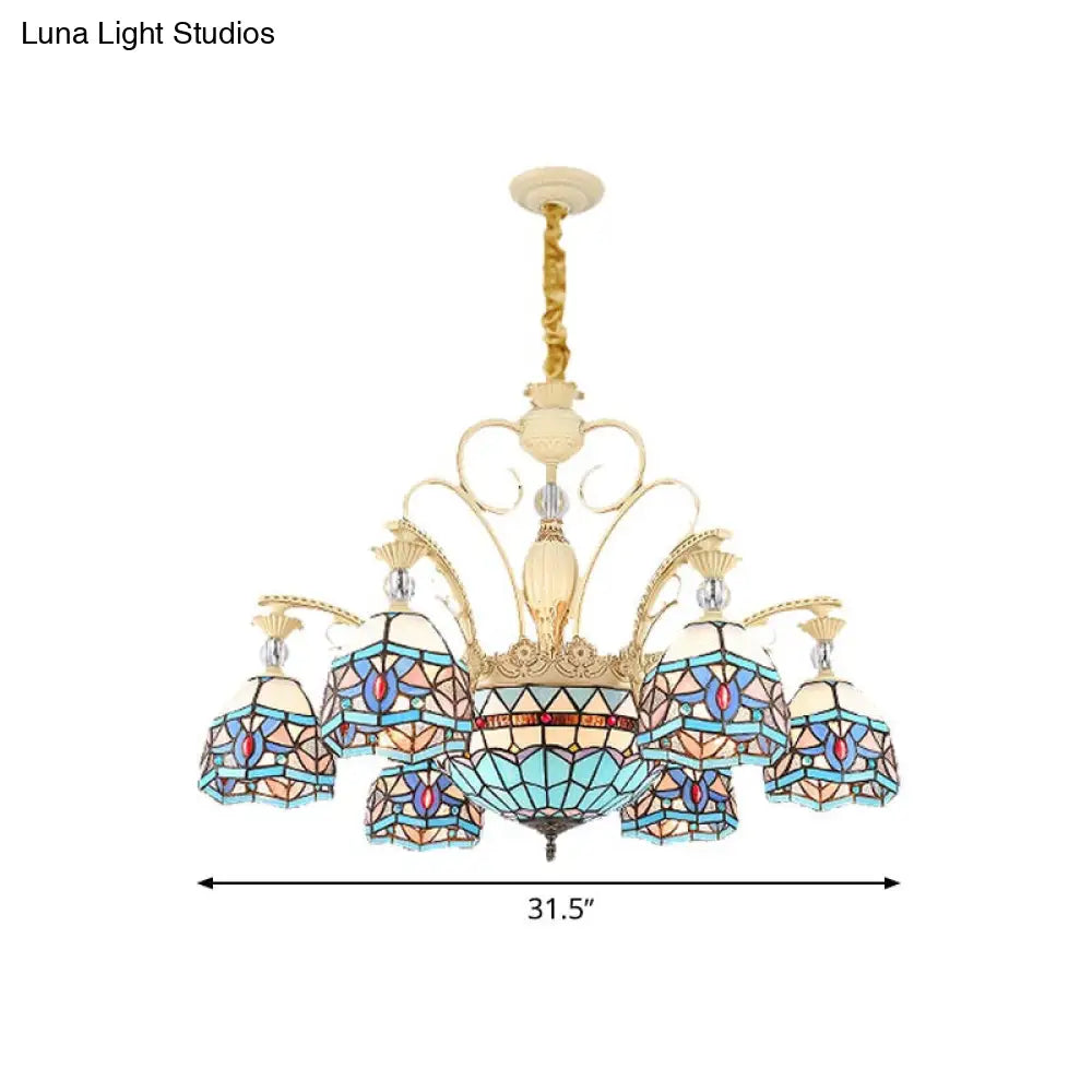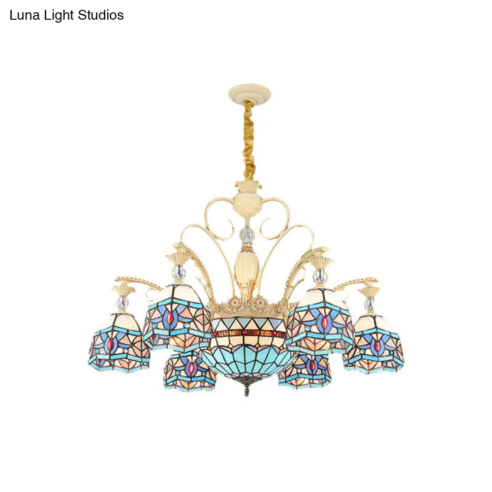 Lámpara de araña victoriana azul con pantalla de cristal tallado - 6/9/11 luces - Lámpara colgante moderna para sala de estar