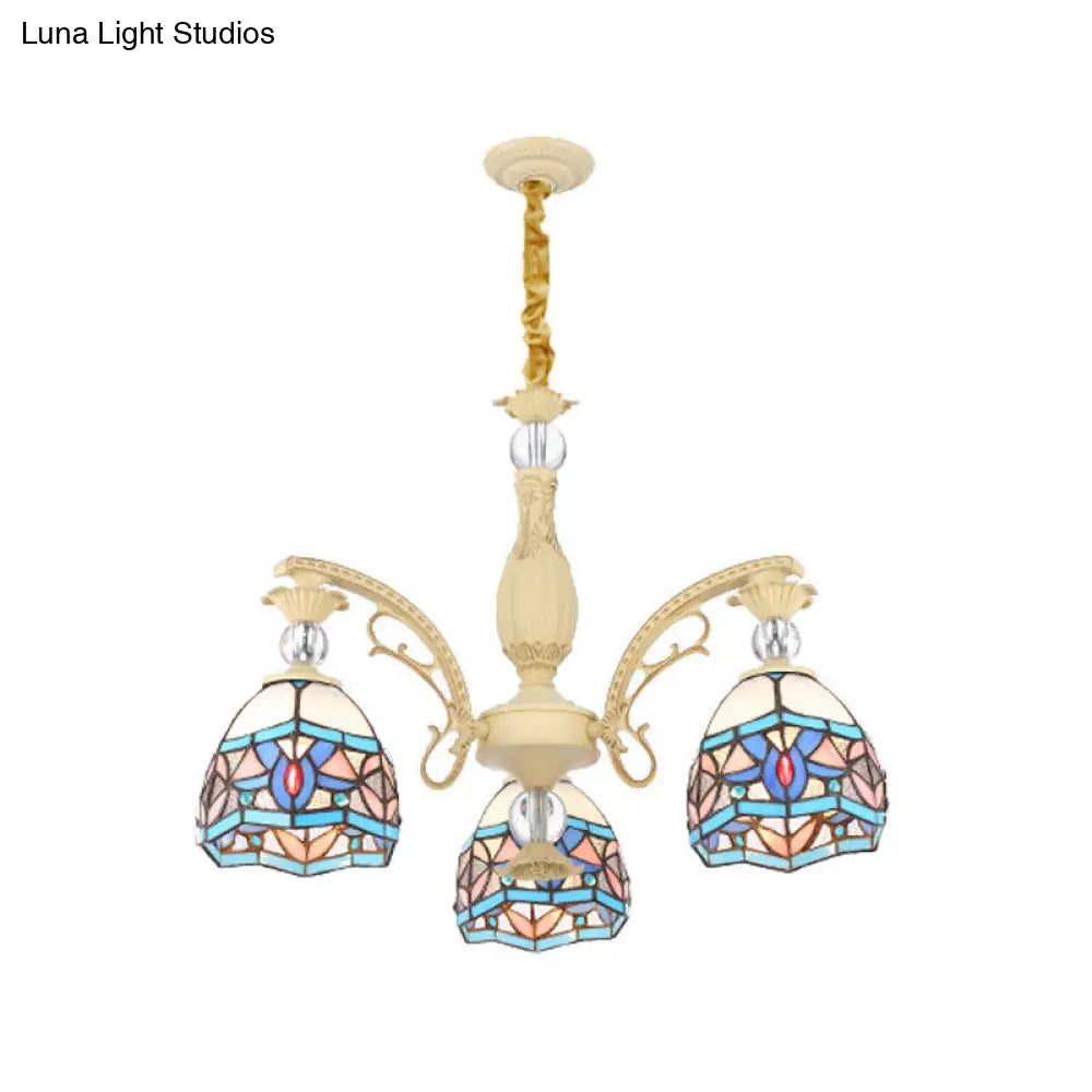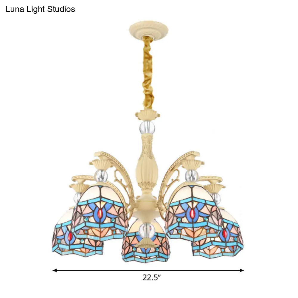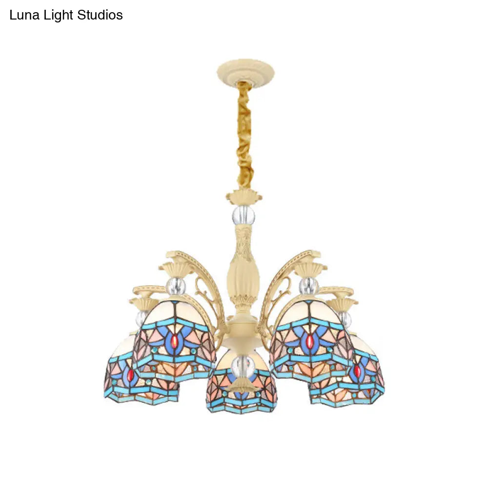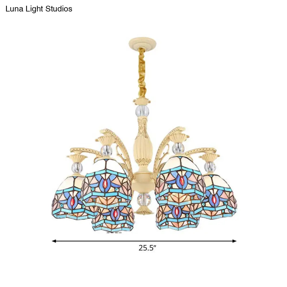 Lámpara de araña victoriana azul con pantalla de cristal tallado - 6/9/11 luces - Lámpara colgante moderna para sala de estar