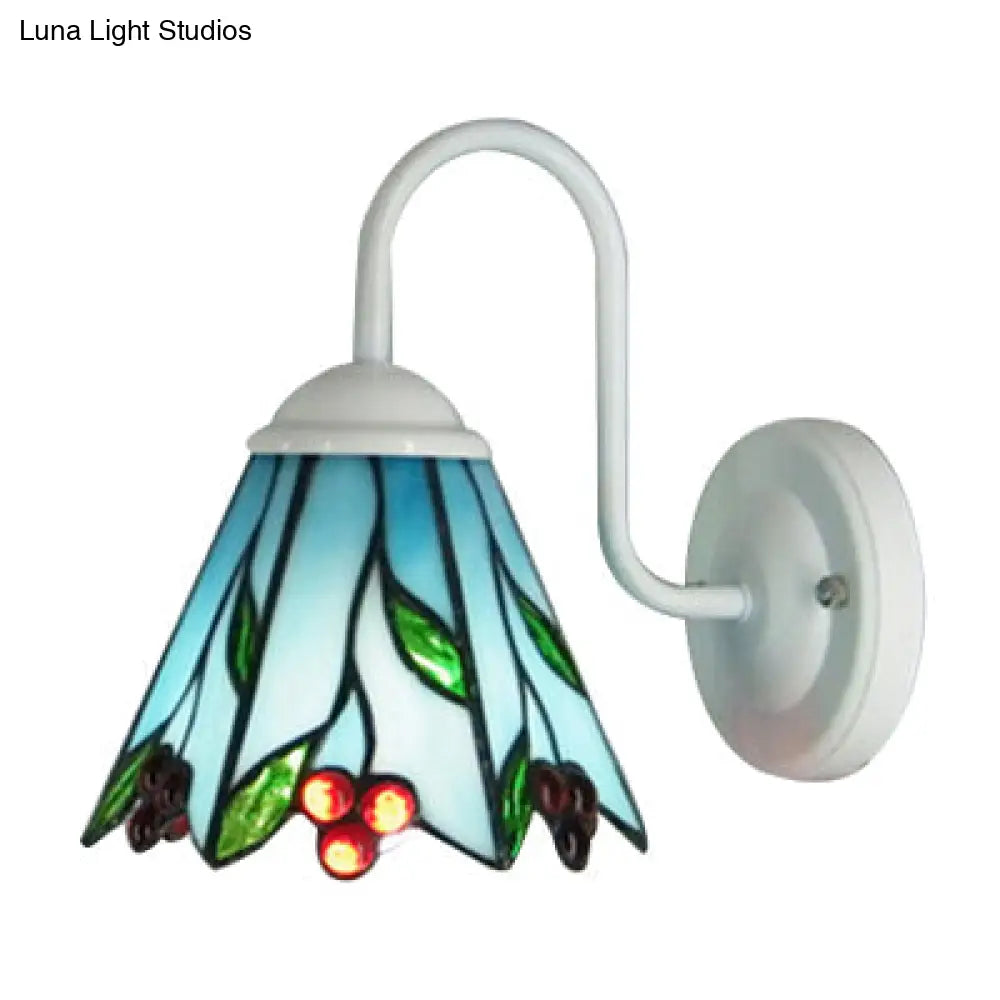Aplique de pared Tiffany con forma de lirio de cristal azul: Iluminación de aplique blanco para sala de estar