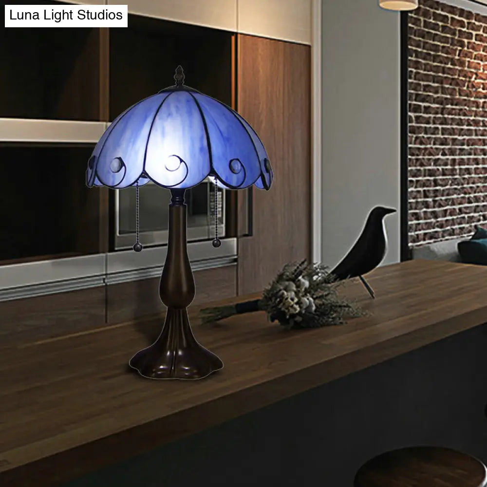 Lámpara de mesa Tiffany Art Déco - Diseño festoneado de cristal azul - Ideal para cafeterías