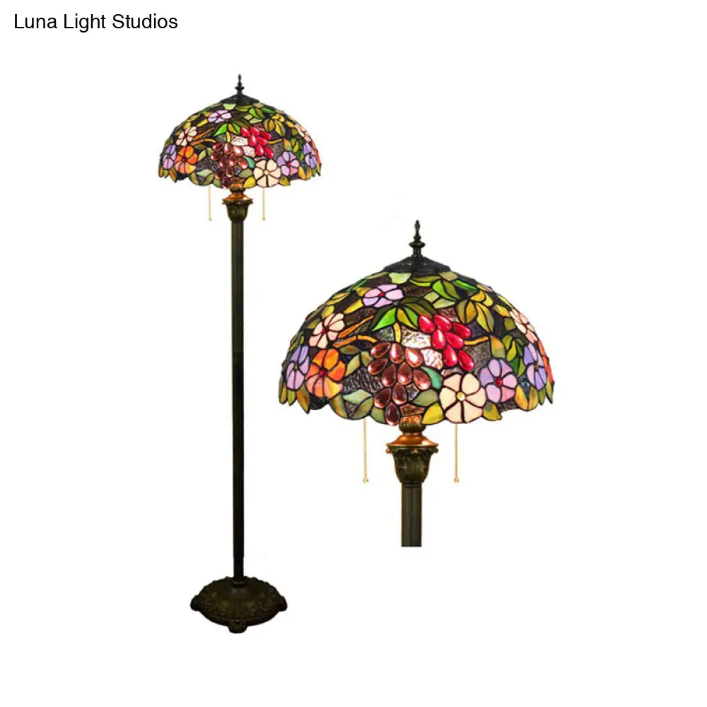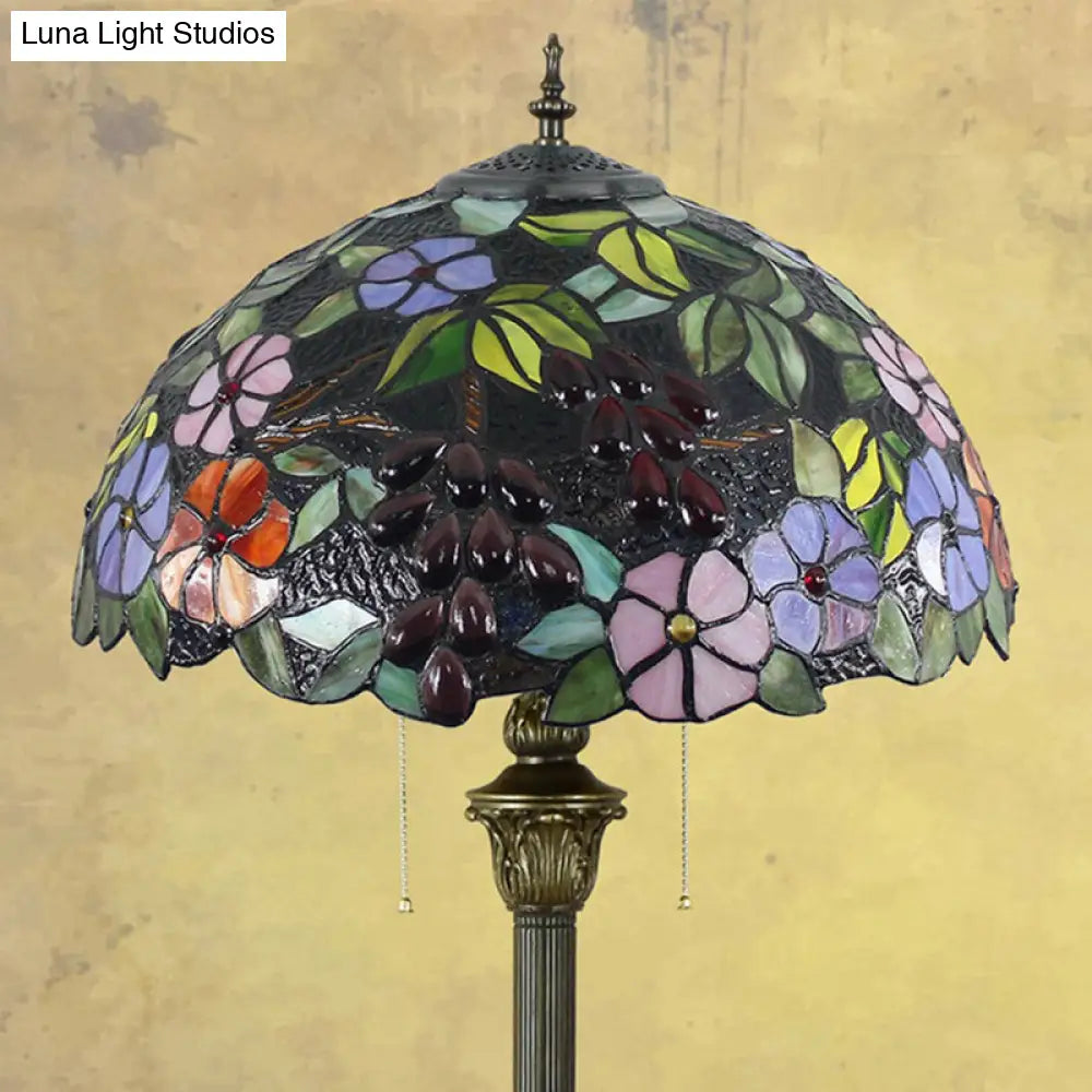 Lámpara de pie antigua de vitral con pantalla en forma de cuenco - 2 cabezales, color púrpura
