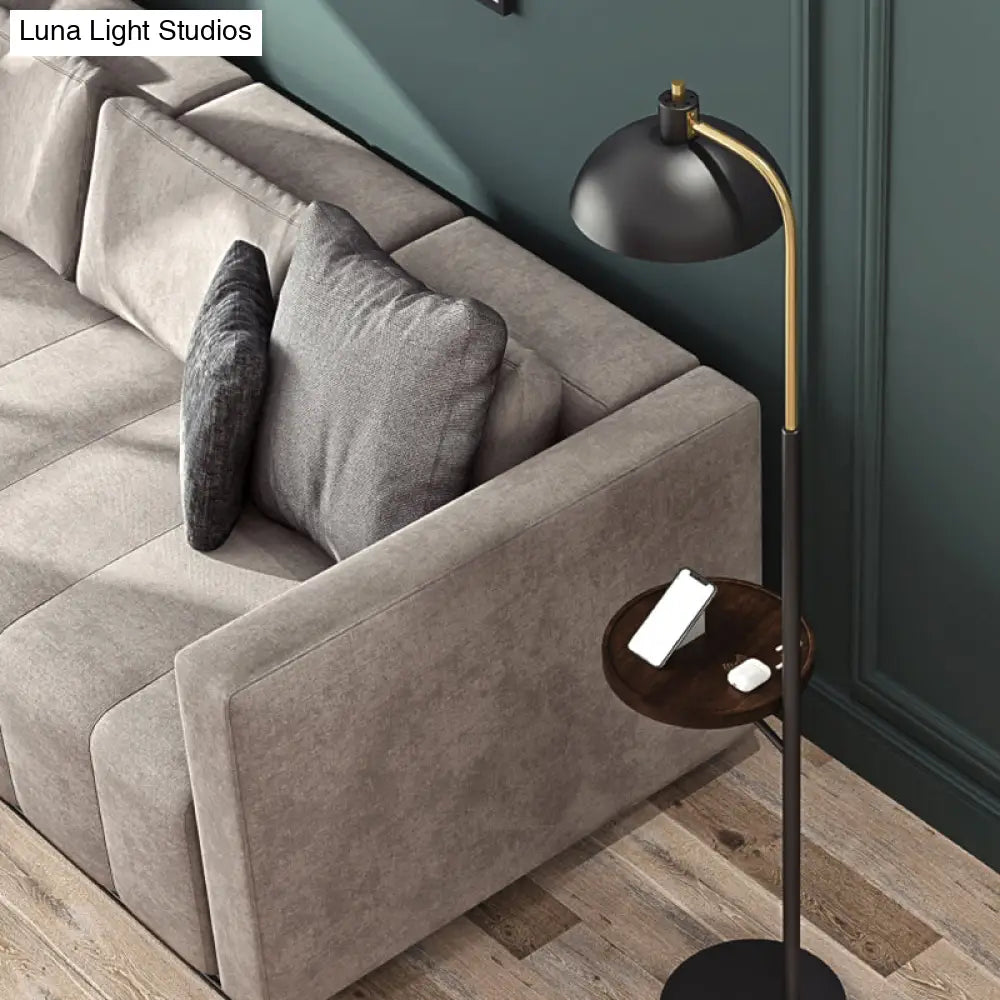 Lámpara de pie de lectura de metal negro con estantes - Diseño minimalista