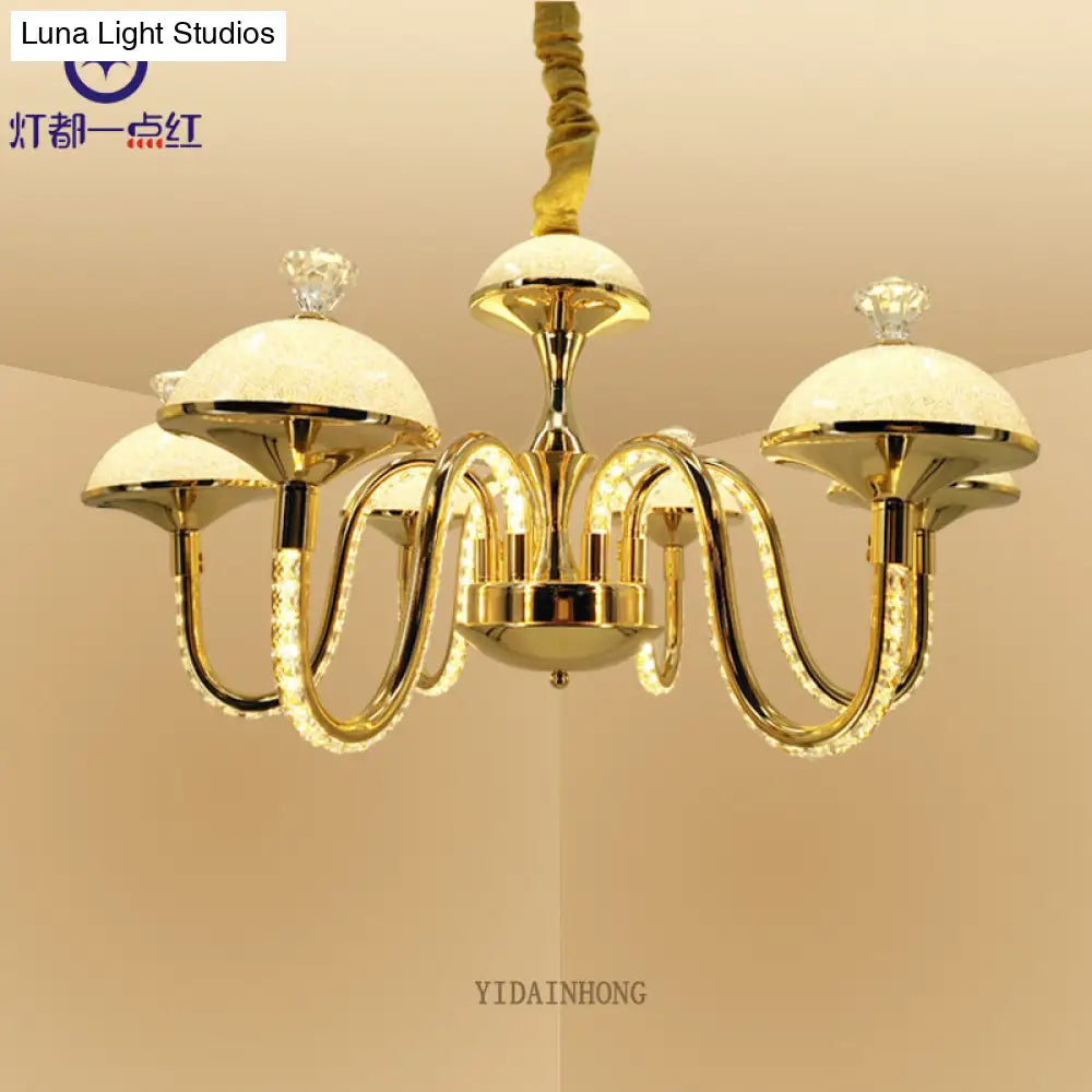Lámpara de araña colgante de cristal K9 con luz LED dorada - Diseño moderno en forma de cuenco y pantalla de cristal esmerilado