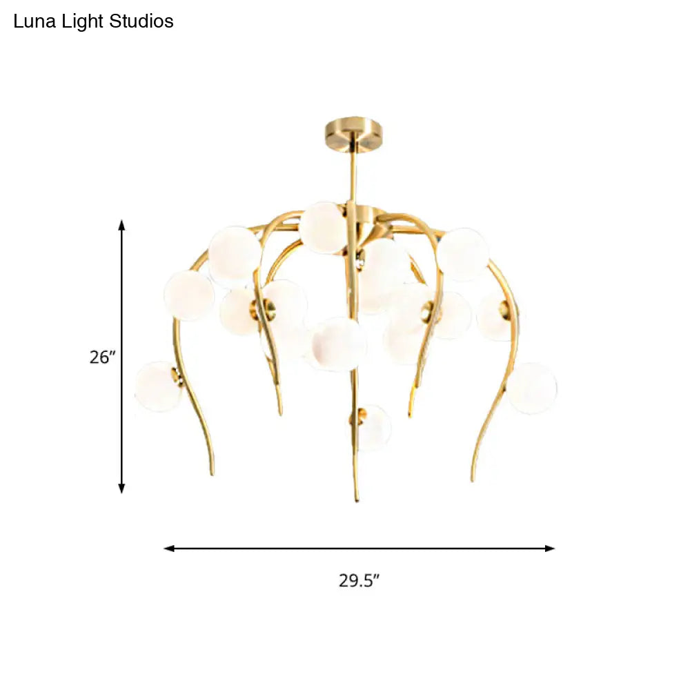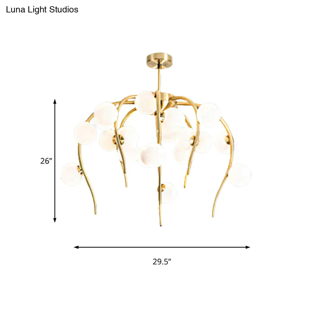 Lámpara de techo moderna de hierro negro y dorado con forma de rama y bolas blancas mate - Lámpara colgante para comedor de 15/20 luces
