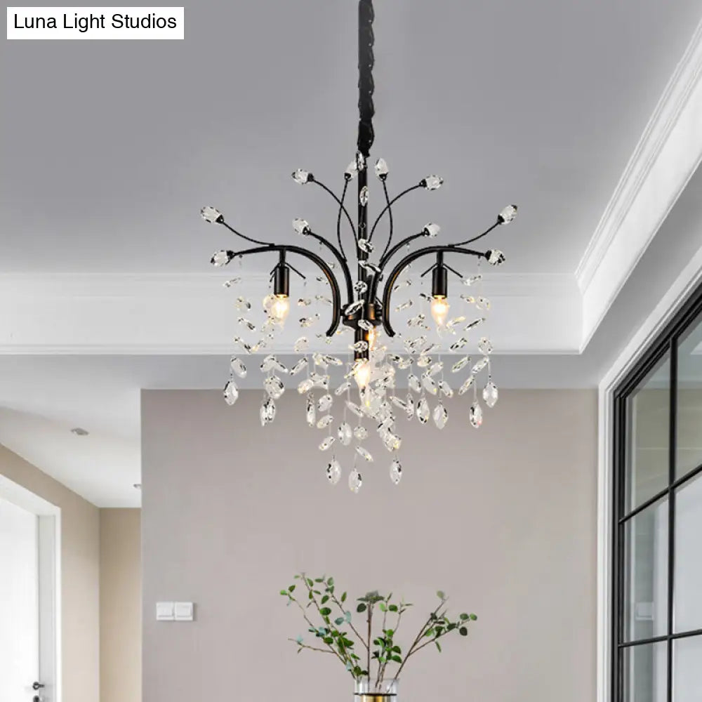 Kit de lámpara colgante moderna de cristal negro - Diseño de rama biselada, 4 bombillas - Elegante lámpara de araña tipo vela