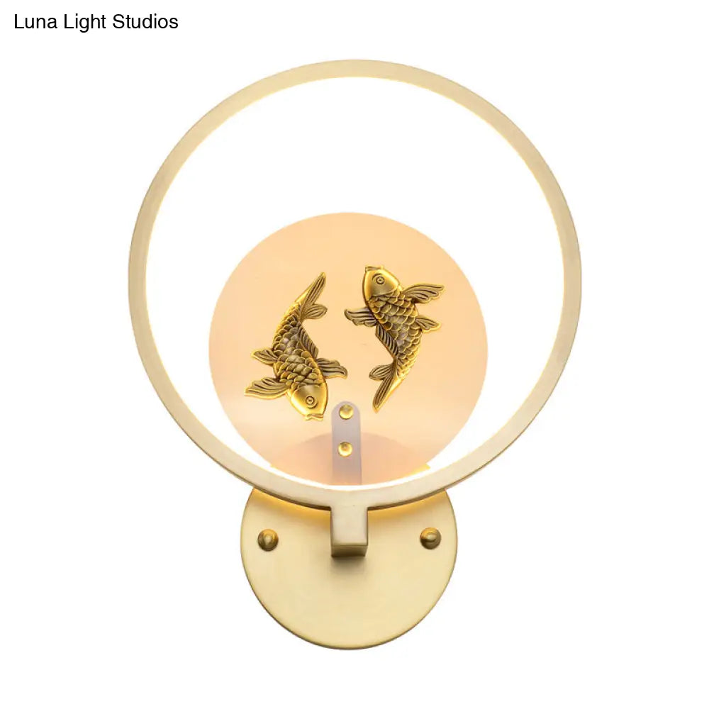 Lámpara mural LED de latón estilo asiático con doble pez: Iluminación metálica para montaje en pared