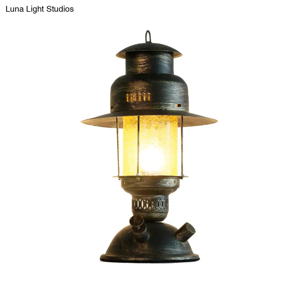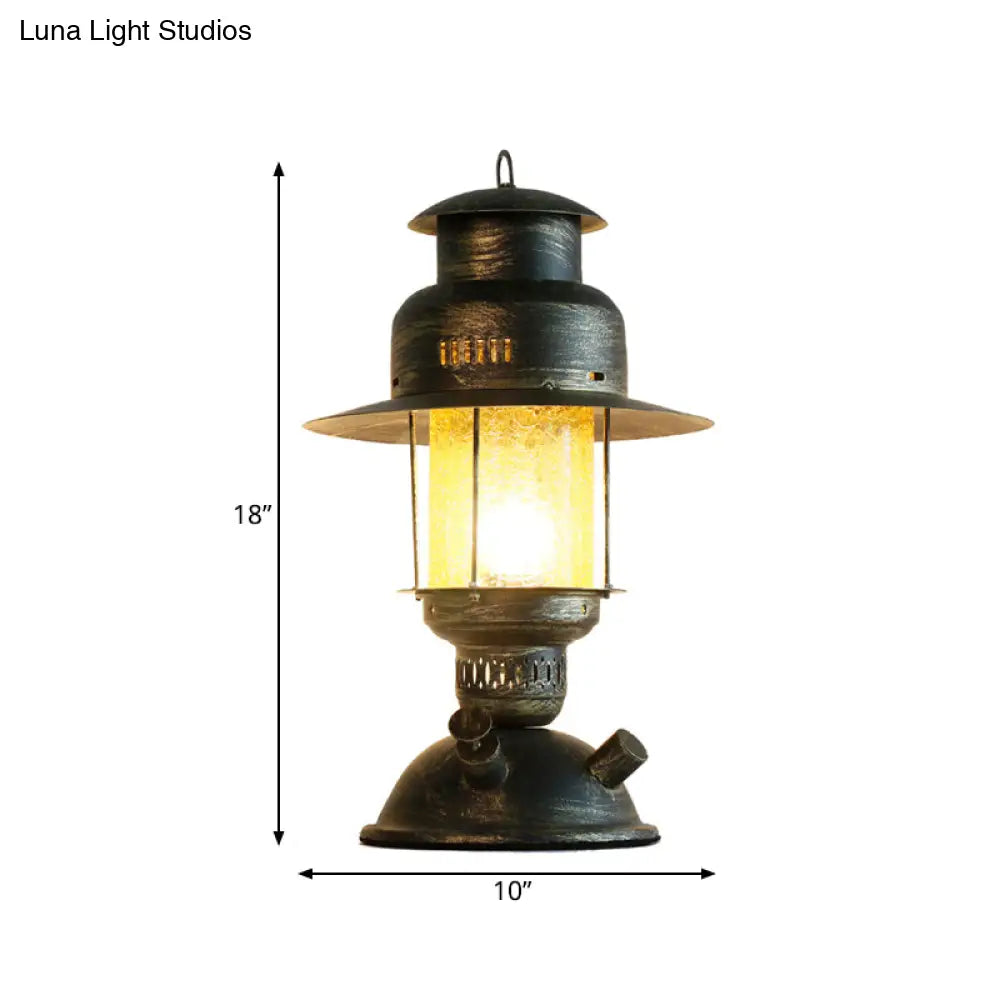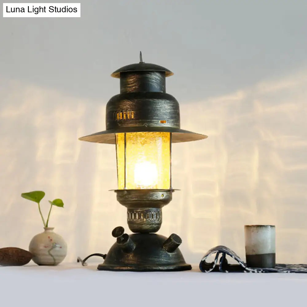 Lámpara de escritorio de queroseno de cristal craquelado amarillo costero - Lámpara de mesa rústica de metal