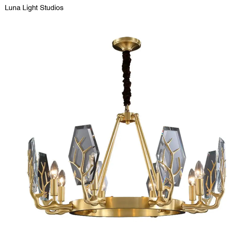 Lámpara de techo colgante moderna con panel de latón y lámpara redonda de cristal - 6/8 luces