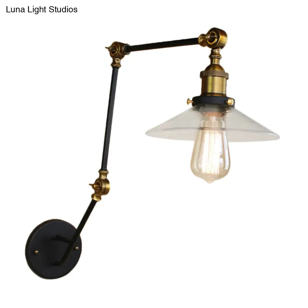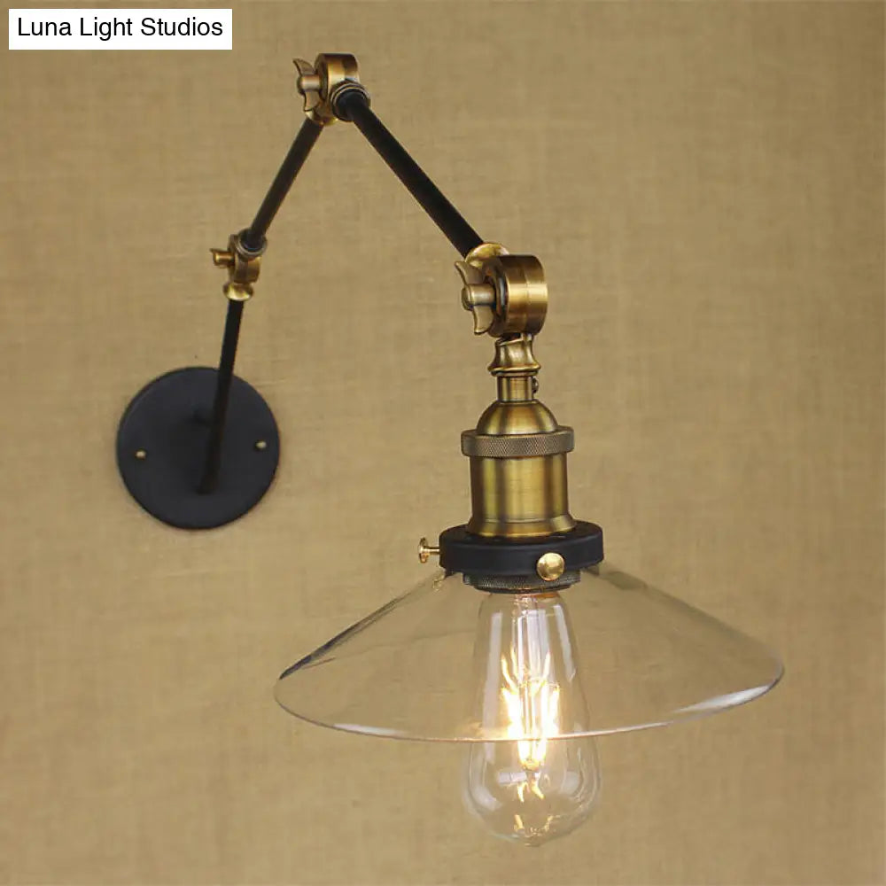 Aplique de pared antiguo de latón con forma acampanada y cristal transparente - Ideal para cafeterías