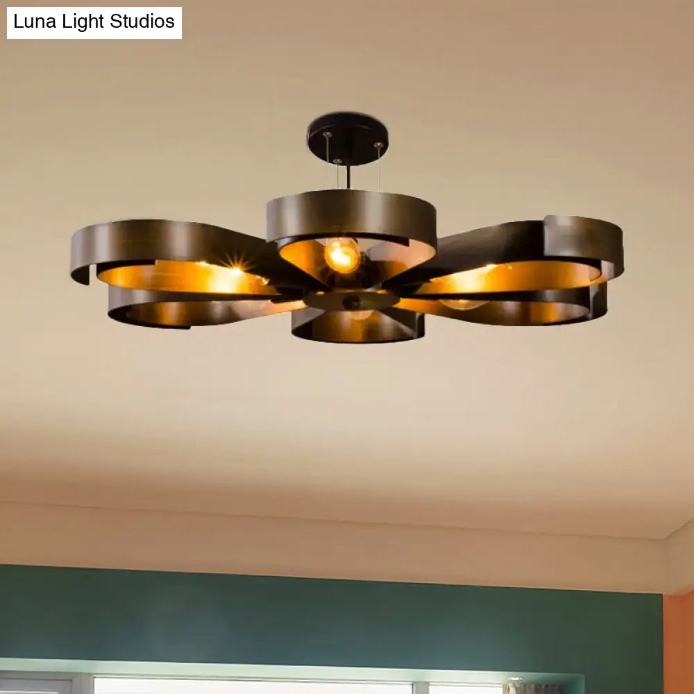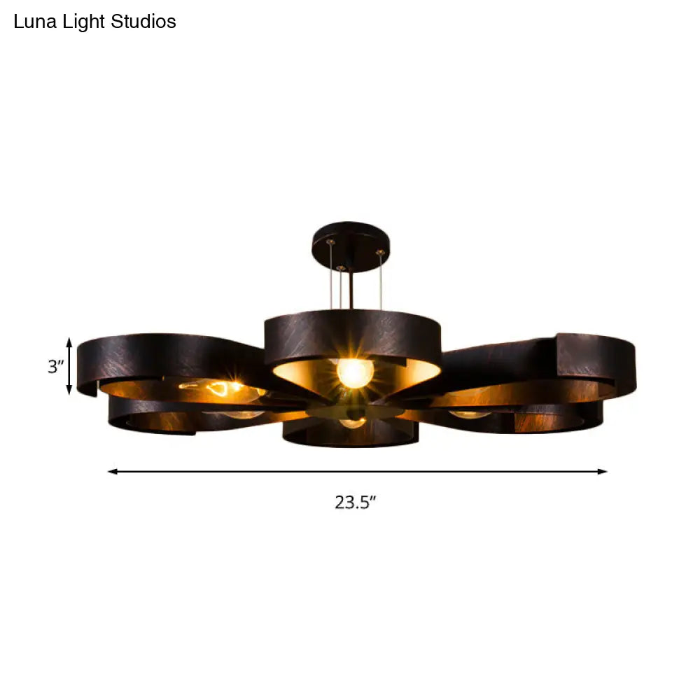 Lámpara de araña vintage de bronce/óxido con forma de flor - Lámpara colgante estilo casa de campo de 6 luces con cable ajustable