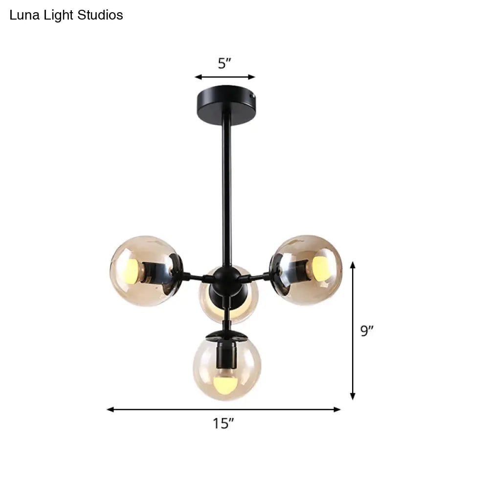 Lámpara colgante de cristal ámbar: Araña moderna para restaurantes (4 luces)