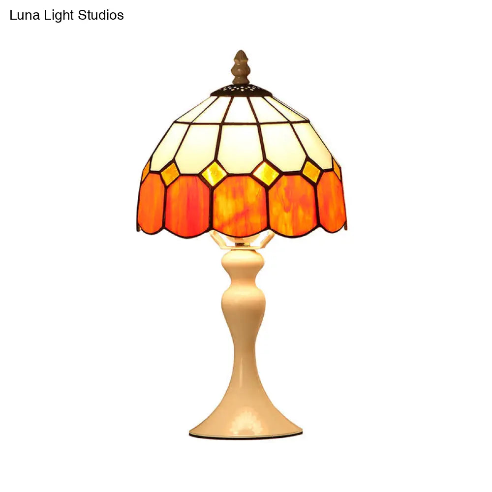 Lámpara de escritorio naranja estilo Tiffany antigua para dormitorio - Lámpara de escritorio tipo cúpula con rejilla estilo café, diseño de vidrio artístico
