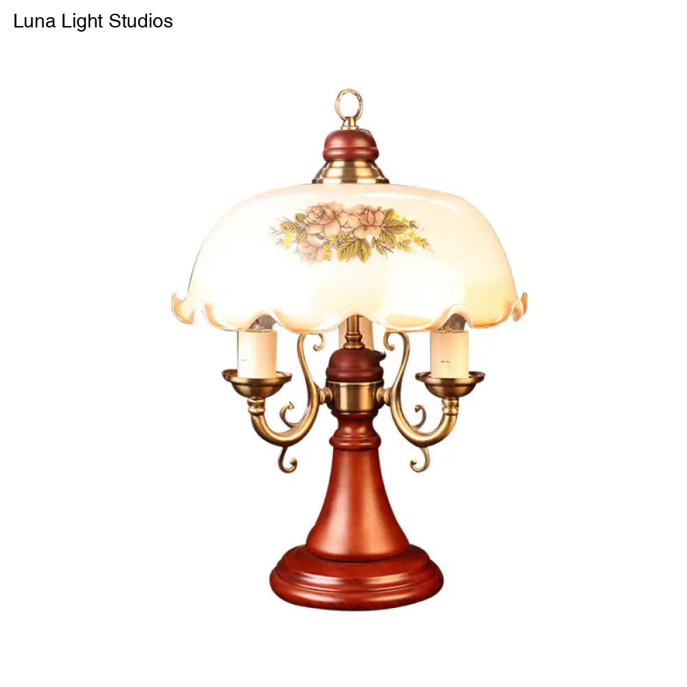 Lámpara de mesa de madera con diseño de flor americana y pantalla de cristal ancha - Marrón rojizo