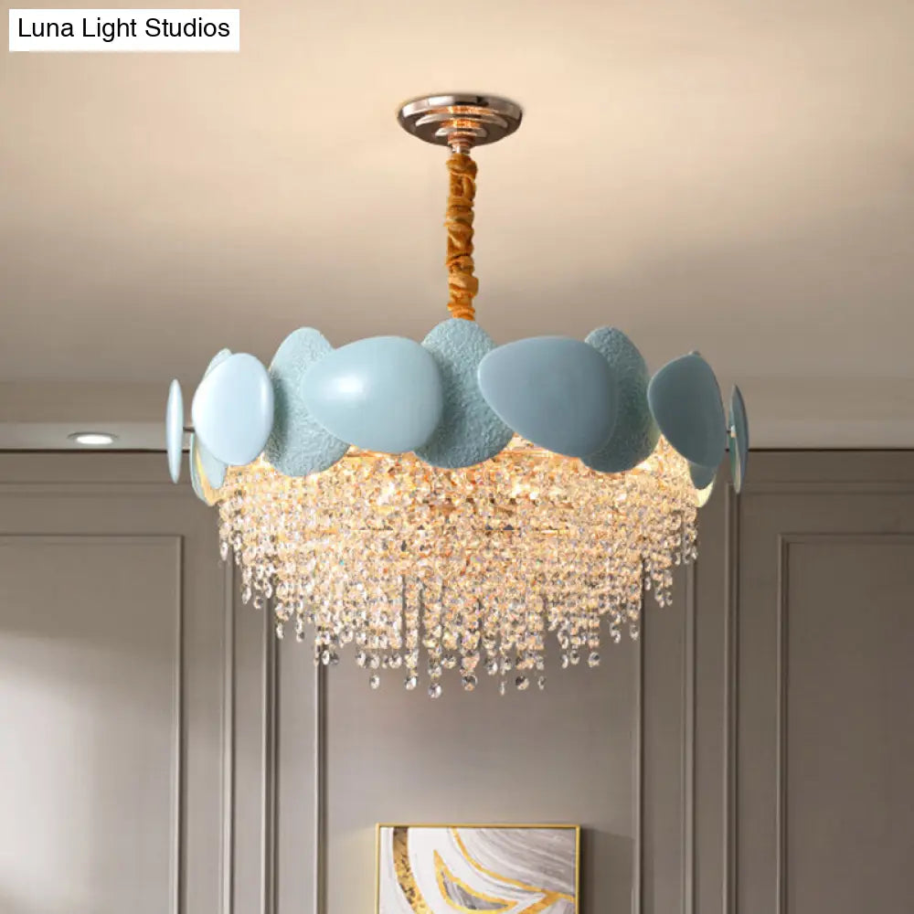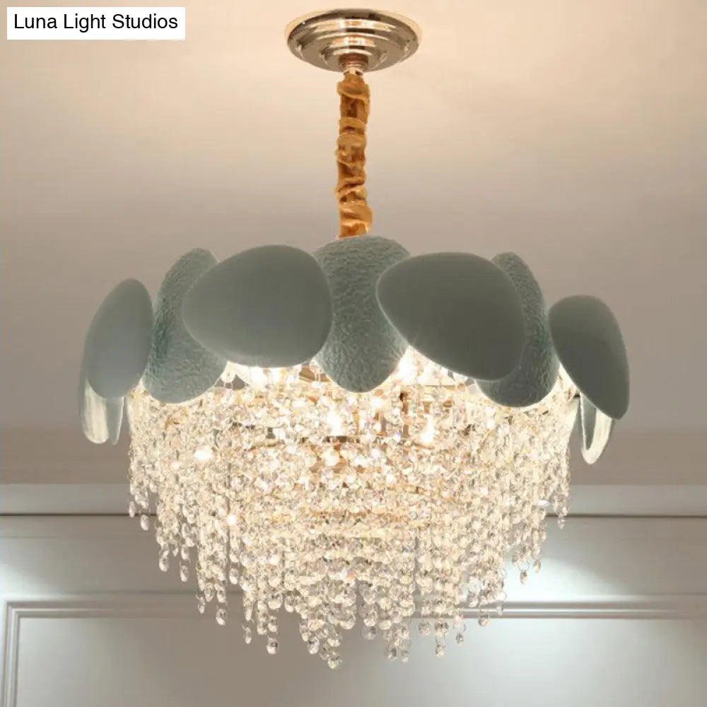 Lámpara de araña tradicional en cascada: Lámpara colgante de cristal transparente de 9 cabezas