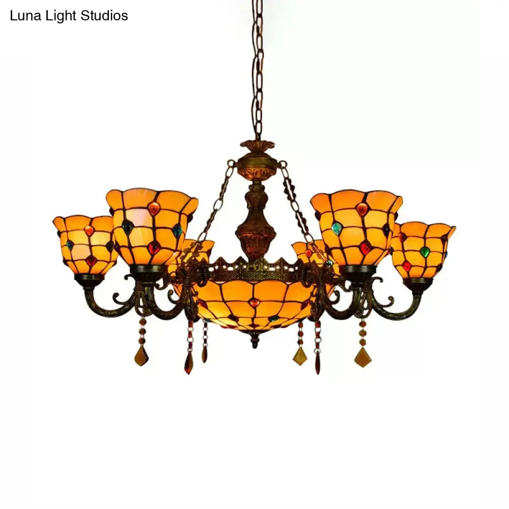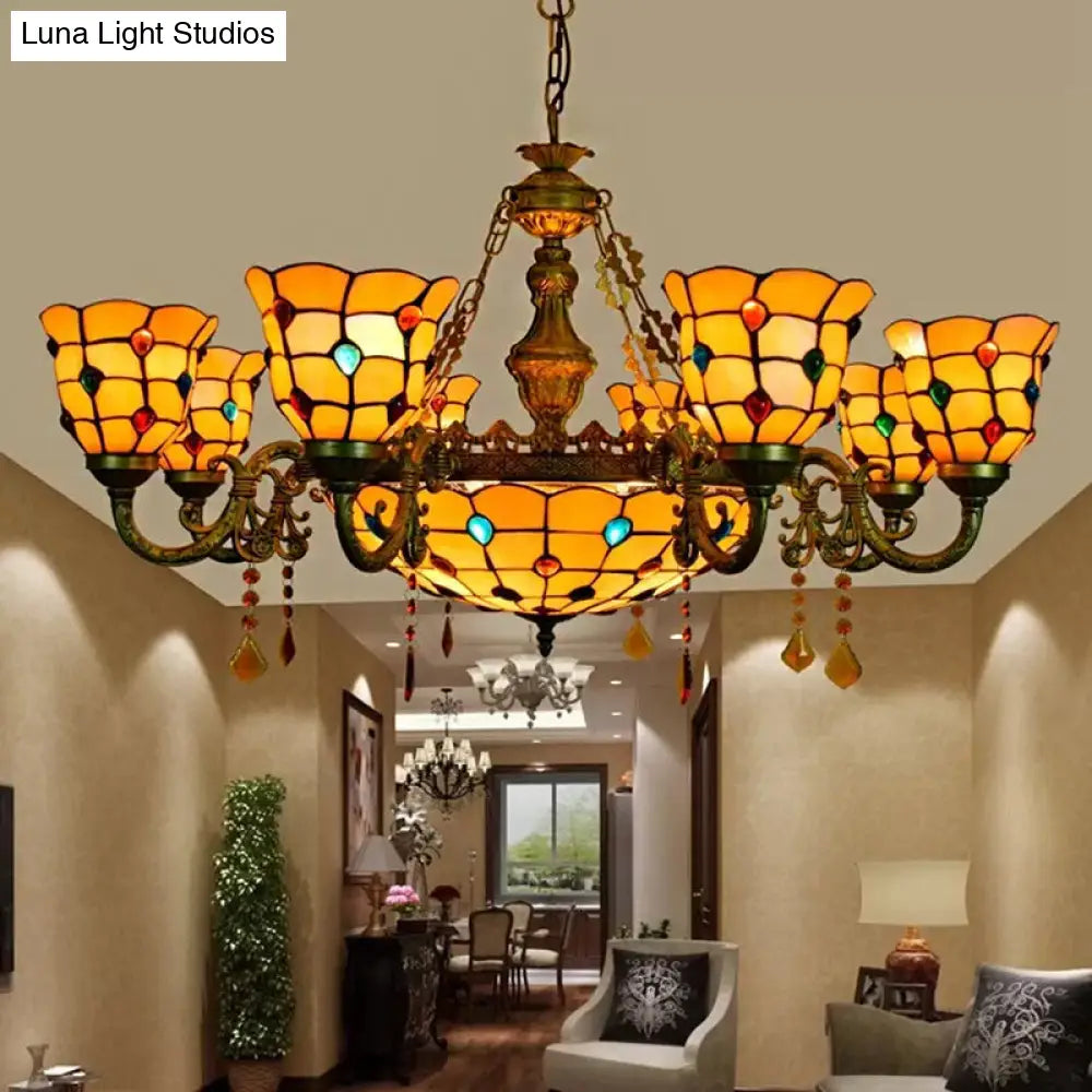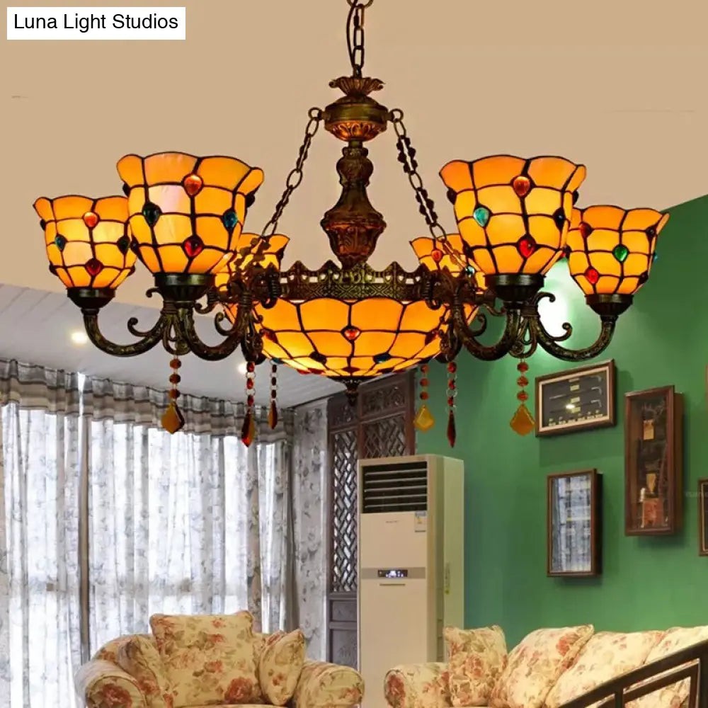 Lámpara de araña de latón envejecido con colgante de estilo Tiffany para mesa de comedor