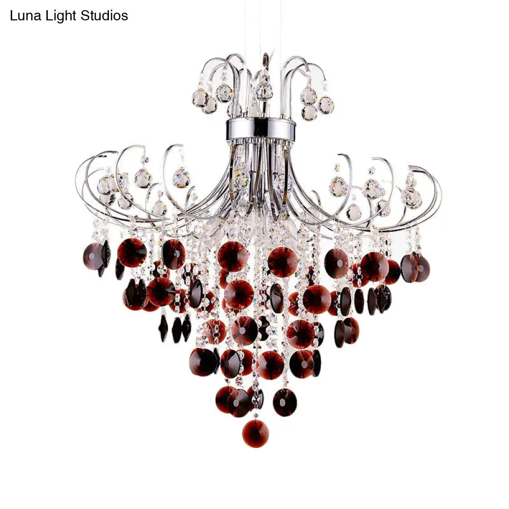 Lámpara colgante de cristal burdeos con acabado cromado - Lámpara de araña moderna de 4 luces para dormitorio
