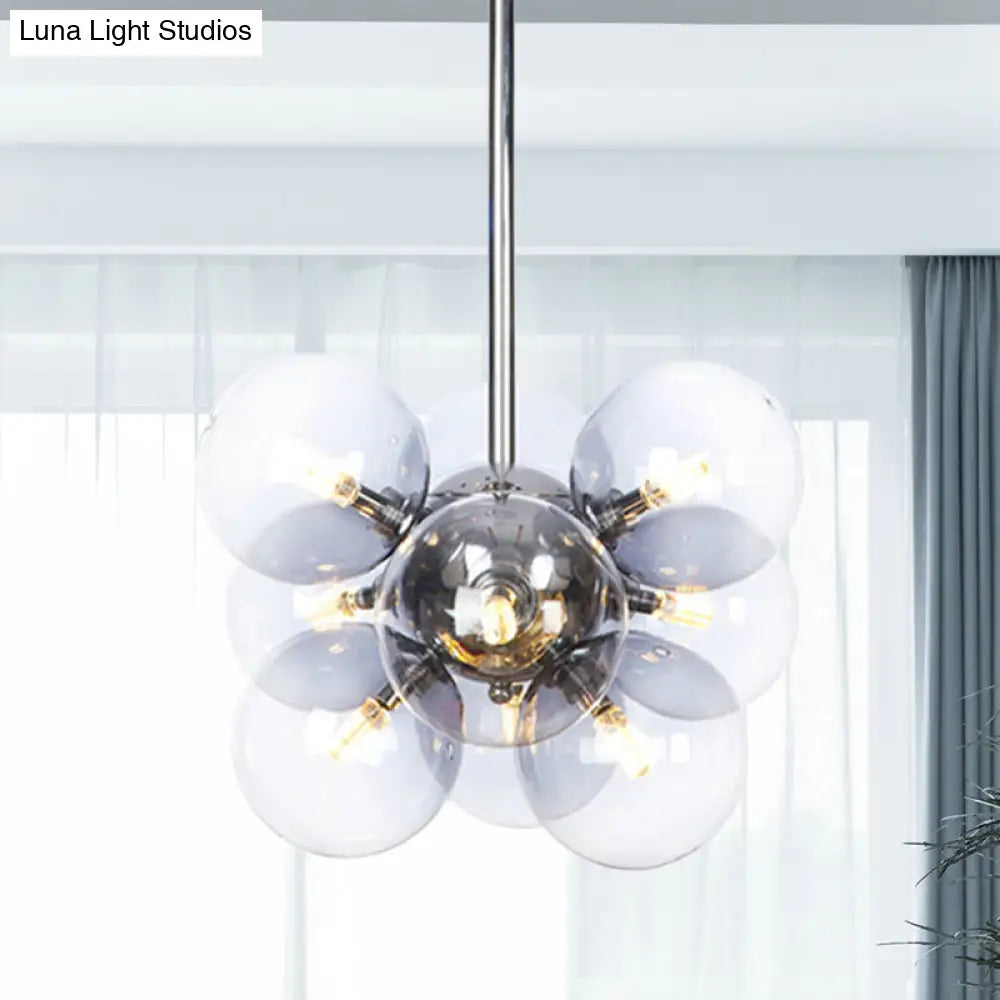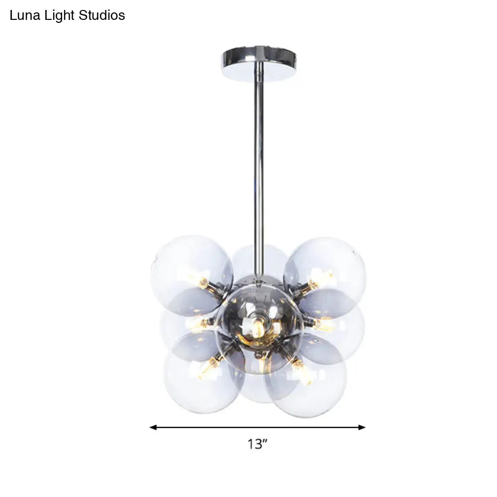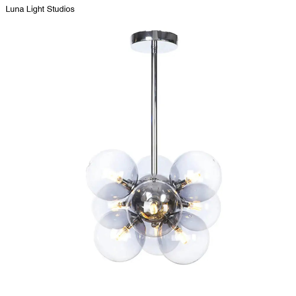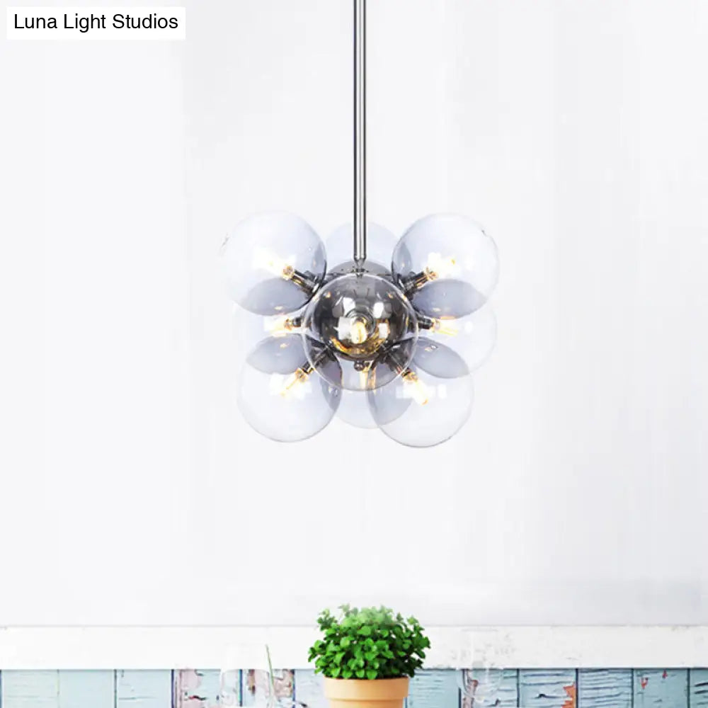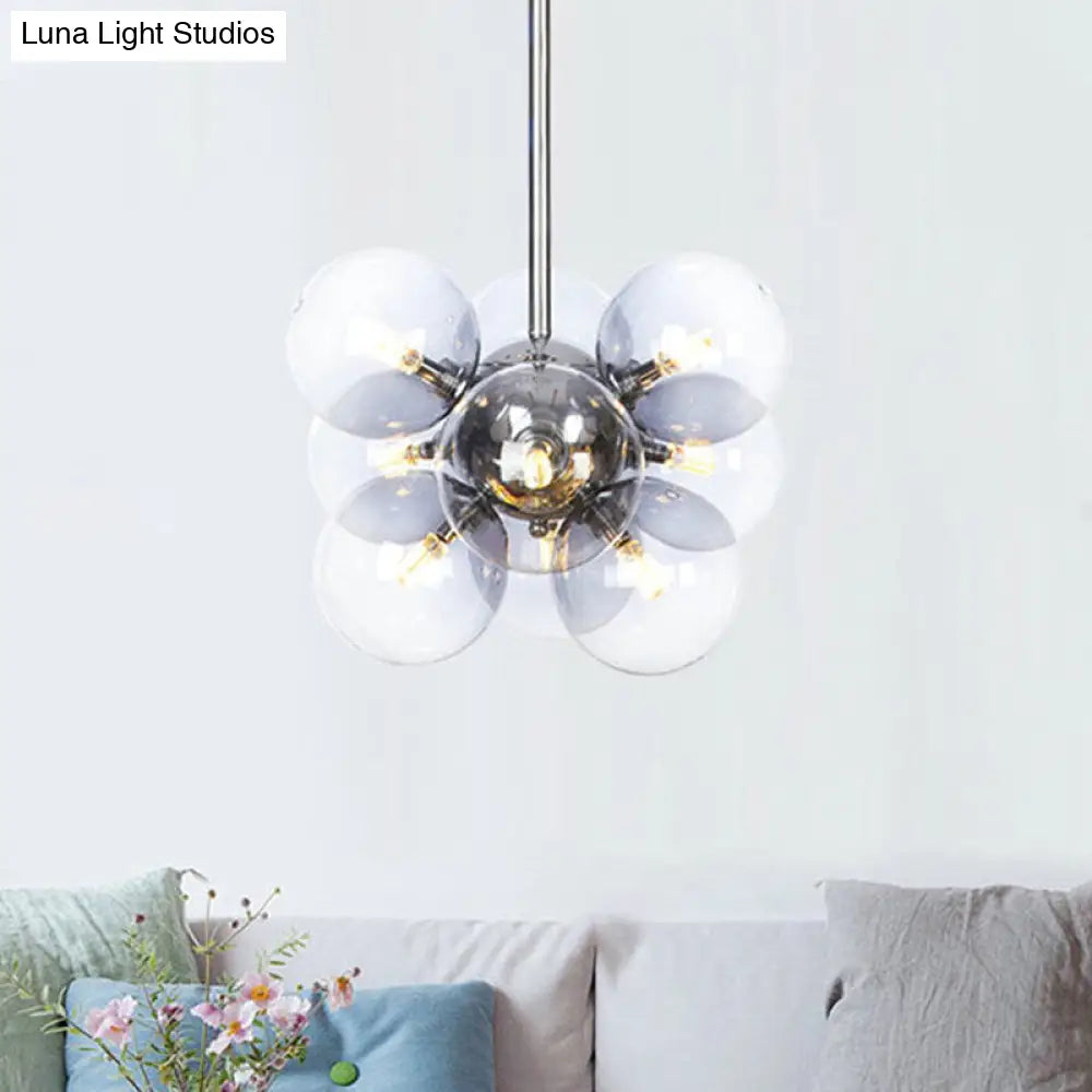 Lámpara de techo moderna esférica cromada de cristal transparente con 9 bombillas