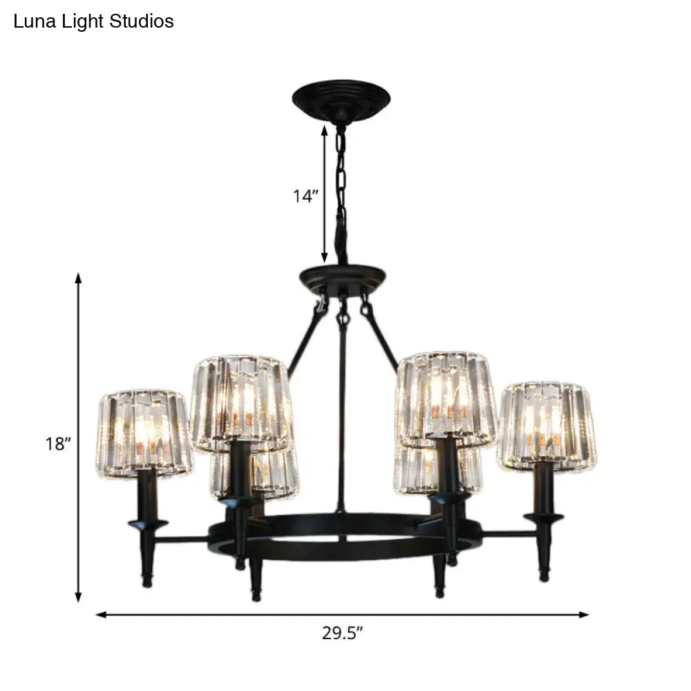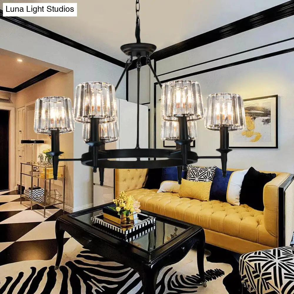 Lámpara de araña circular de cristal contemporánea con 6/8 bombillas - Lámpara colgante negra para sala de estar