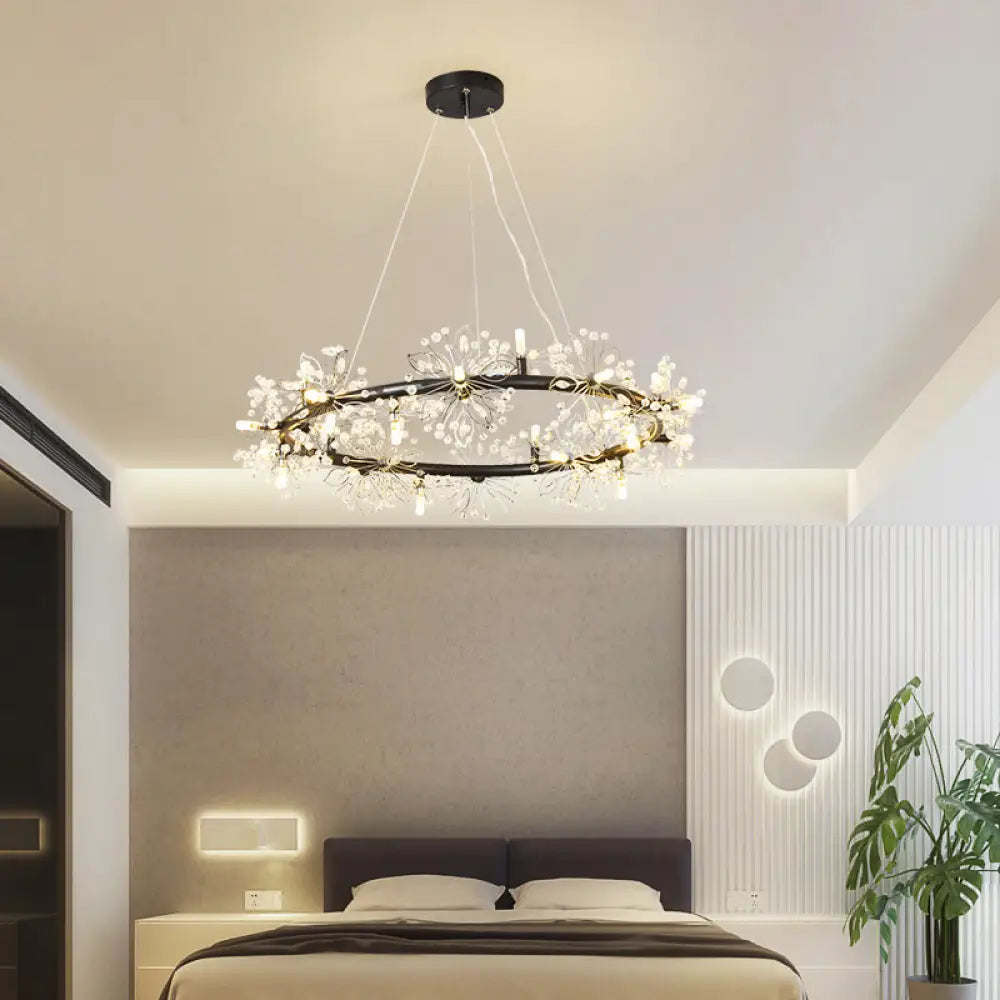 Lámpara de araña LED minimalista negra - Lámpara colgante circular con cuentas de cristal, 20,5"/26"/34" de ancho