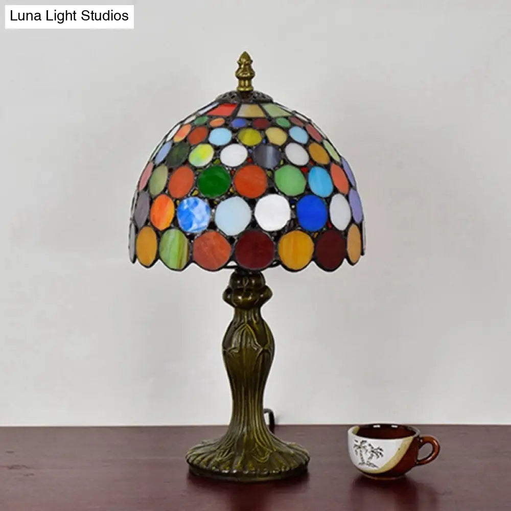 Lámpara de mesa de noche circular de vitral estilo antiguo - Luz de mesa naranja para sala de estar