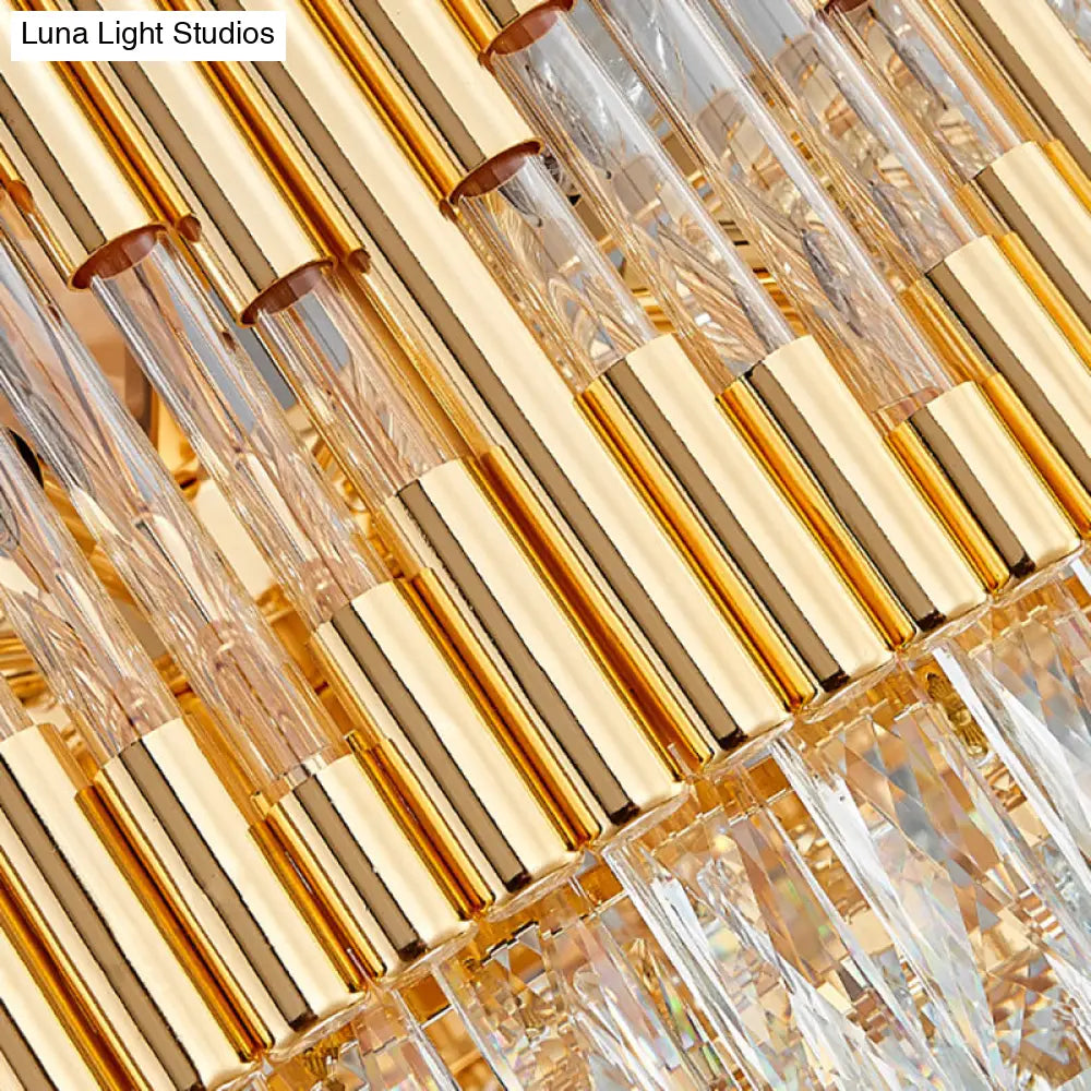 Lámpara colgante circular vintage con prisma de cristal - Metal dorado