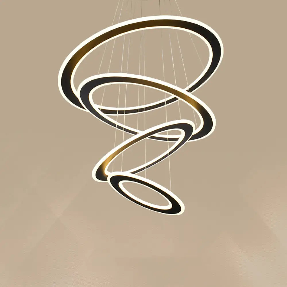 Lámpara de techo circular LED Art Déco en color negro para escalera