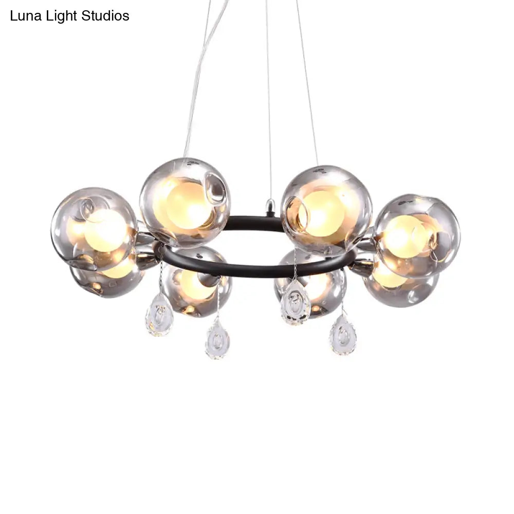 Lámpara de araña colgante moderna con forma de esfera de cristal gris ahumado y gota - 8 luces, negra