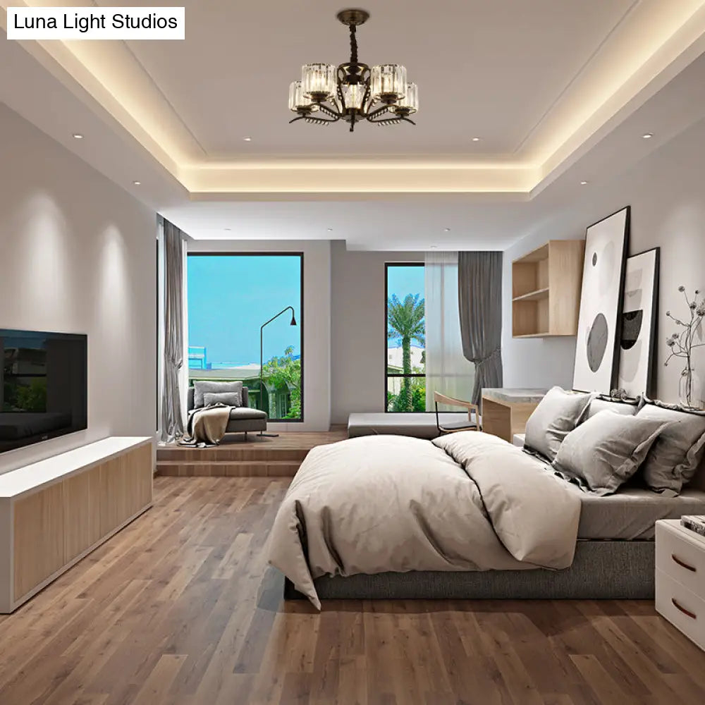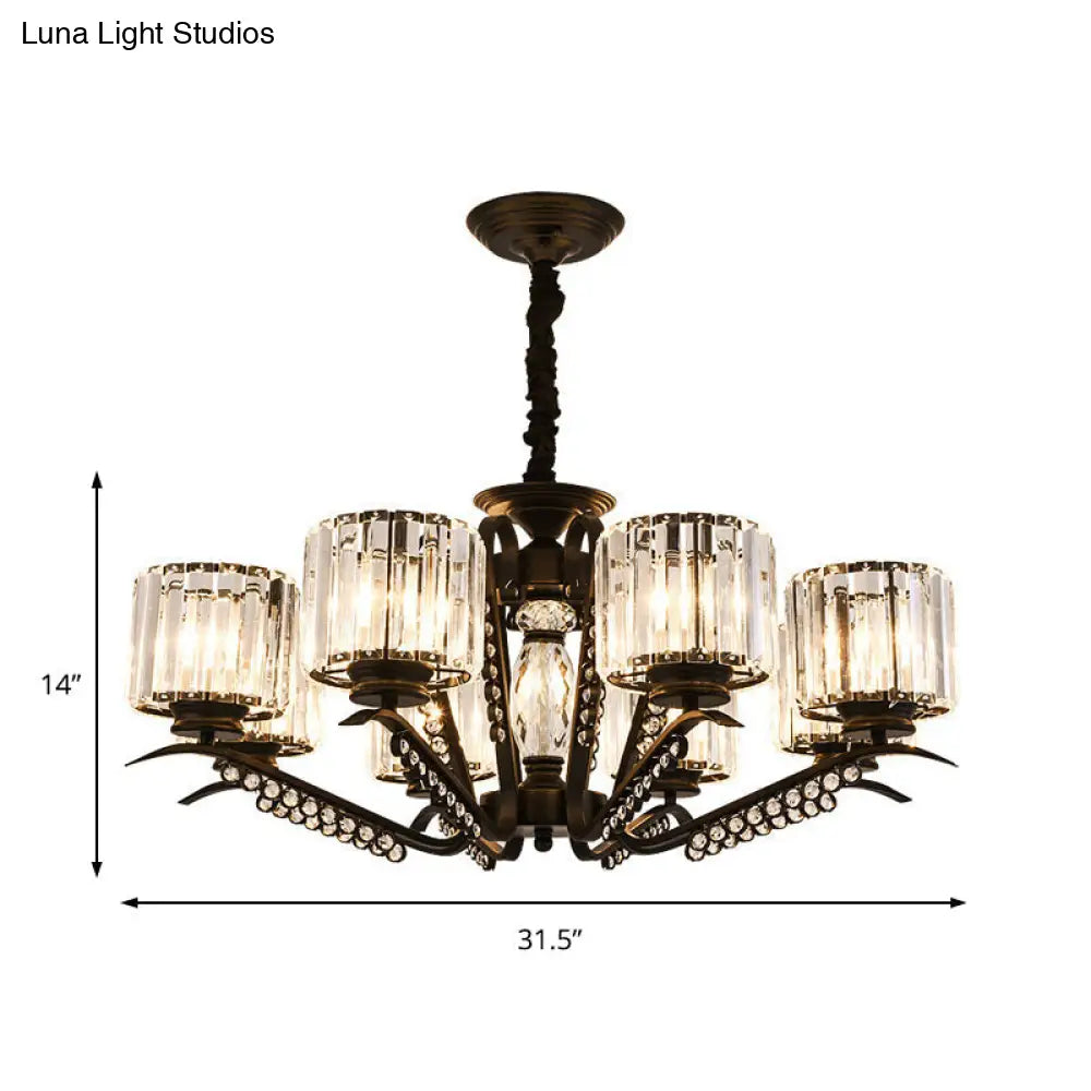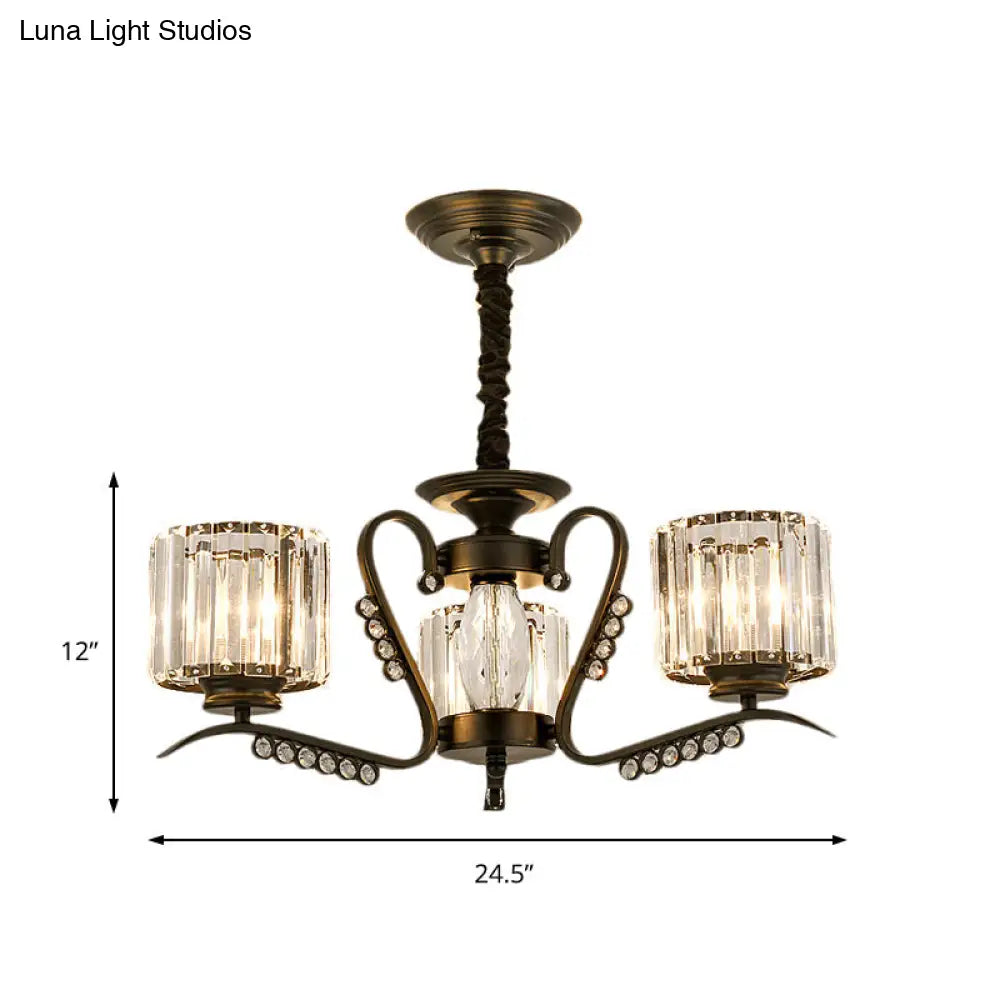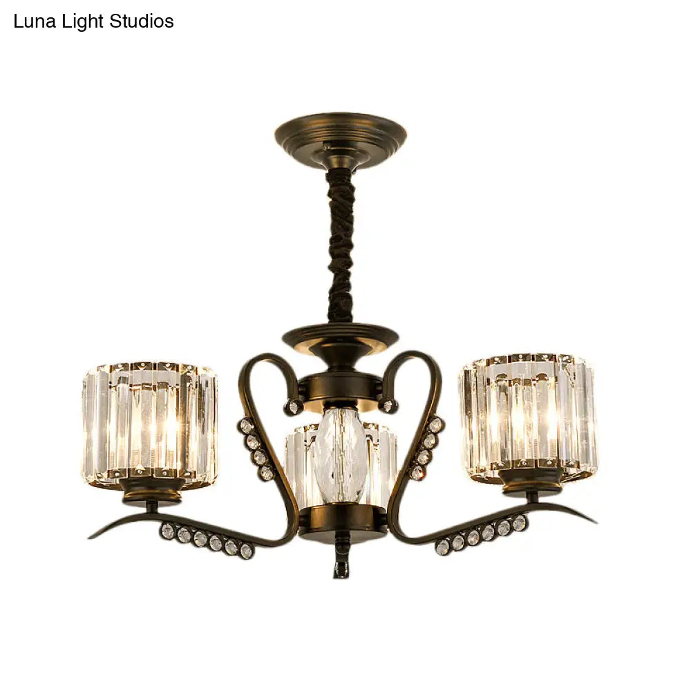 Lámpara de araña de cristal negro estilo vintage con forma de tambor - Lámpara colgante de 3/5 cabezas para comedor