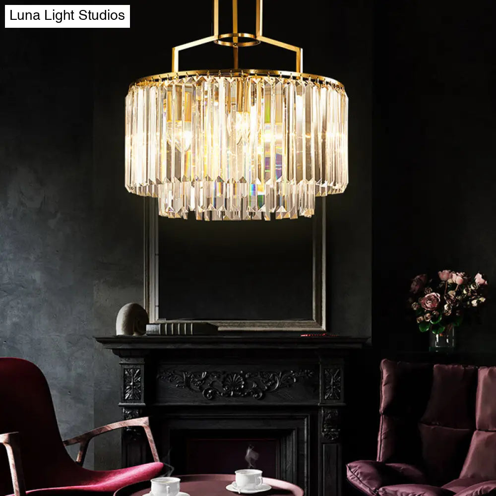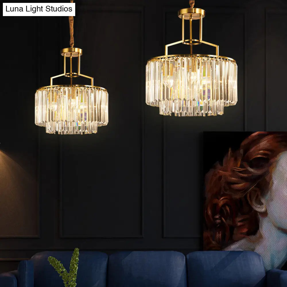 Lámpara de araña colgante de dos niveles con prisma de cristal transparente y diseño moderno dorado - 3/5/8 luces