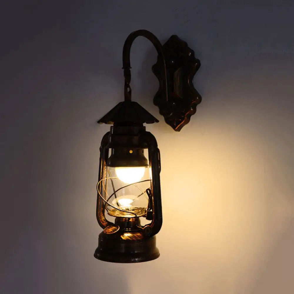 Aplique de pared antiguo de bronce con cristal transparente, estilo industrial.